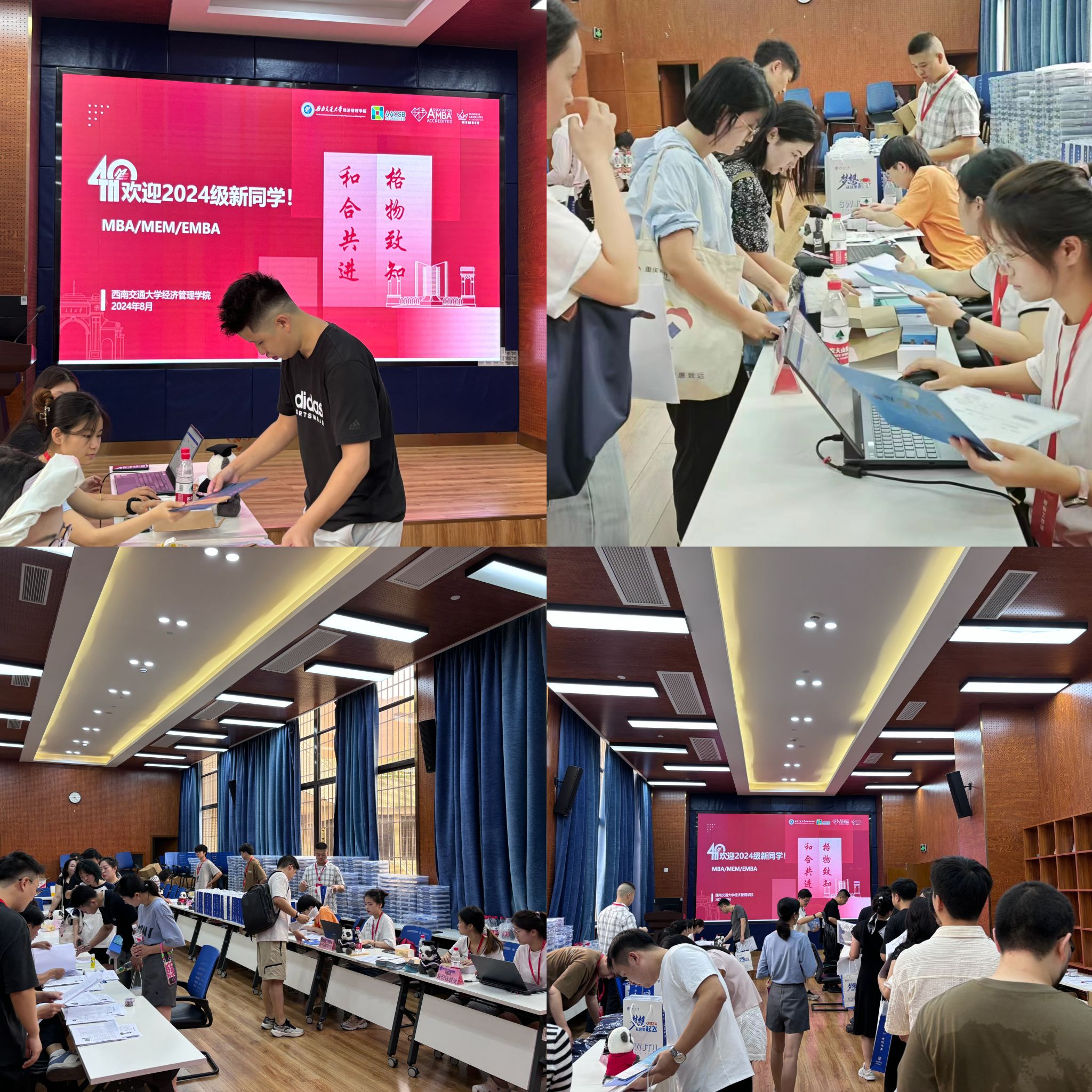 2024年8月29日,我院EMBA(高级工商管理硕士)项目迎来了新一届的新生力量。迎新报到现场,学院老师和志愿者们早早就位,为每一位新生提供贴心服务。整个报到流程井然有序,新生们在工作人员的引导下依次完成了资料审核、物资领取、交表登记等环节,并配有详细的入学指南和校园导览服务。