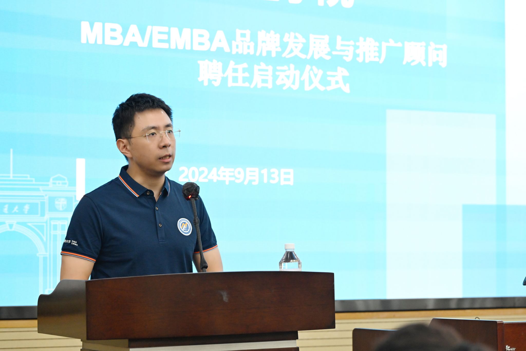 2022级MBA线上线下班杨勇作为发言代表提到,身为MBA项目的院友,他深感荣幸能够回到学院担任品牌发展与推广顾问,并承诺将利用自身的行业经验和社会资源,为学院品牌发展贡献力量。另一位发言代表2023级MBA周末1班的曾丹丽则分享了她对学院MBA发展与推广的认知,并表示,将用好自身优势,助力学院在更广层面上提升知名度,吸引更多优秀人才加入交大。