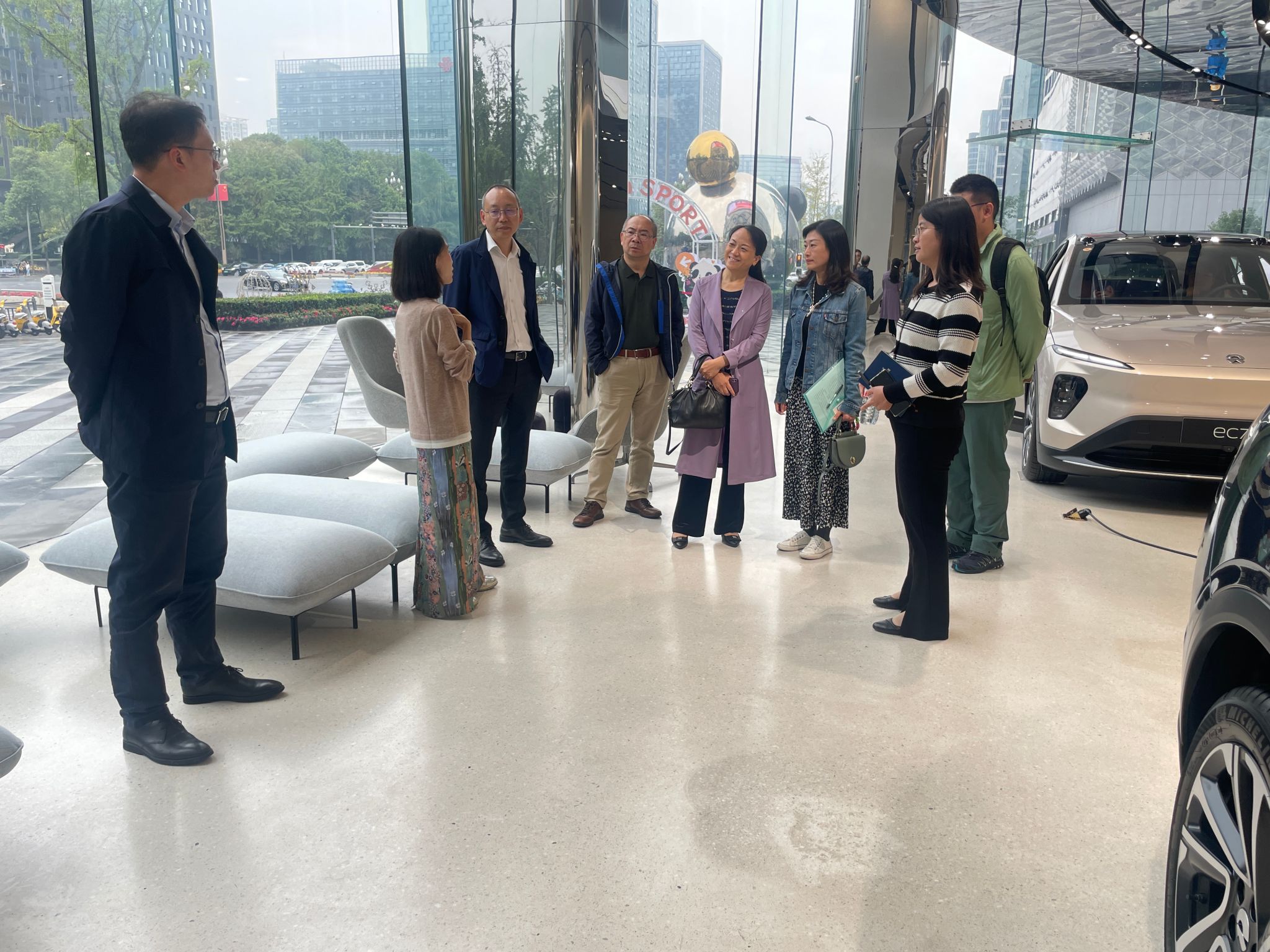 活动开始前,学院一行人乘坐蔚来汽车最新款车型车辆抵达现场,亲身体验了蔚来电车的卓越性能和先进技术。随后,在蔚来负责人许文娟的热情引导下,我院代表参观蔚来汽车展厅,深入了解了蔚来从创立至今的辉煌历程、发展理念以及未来规划。