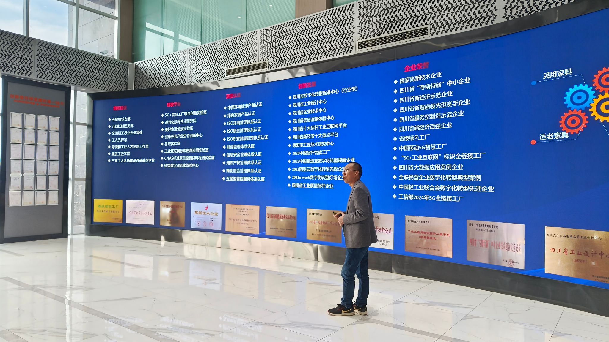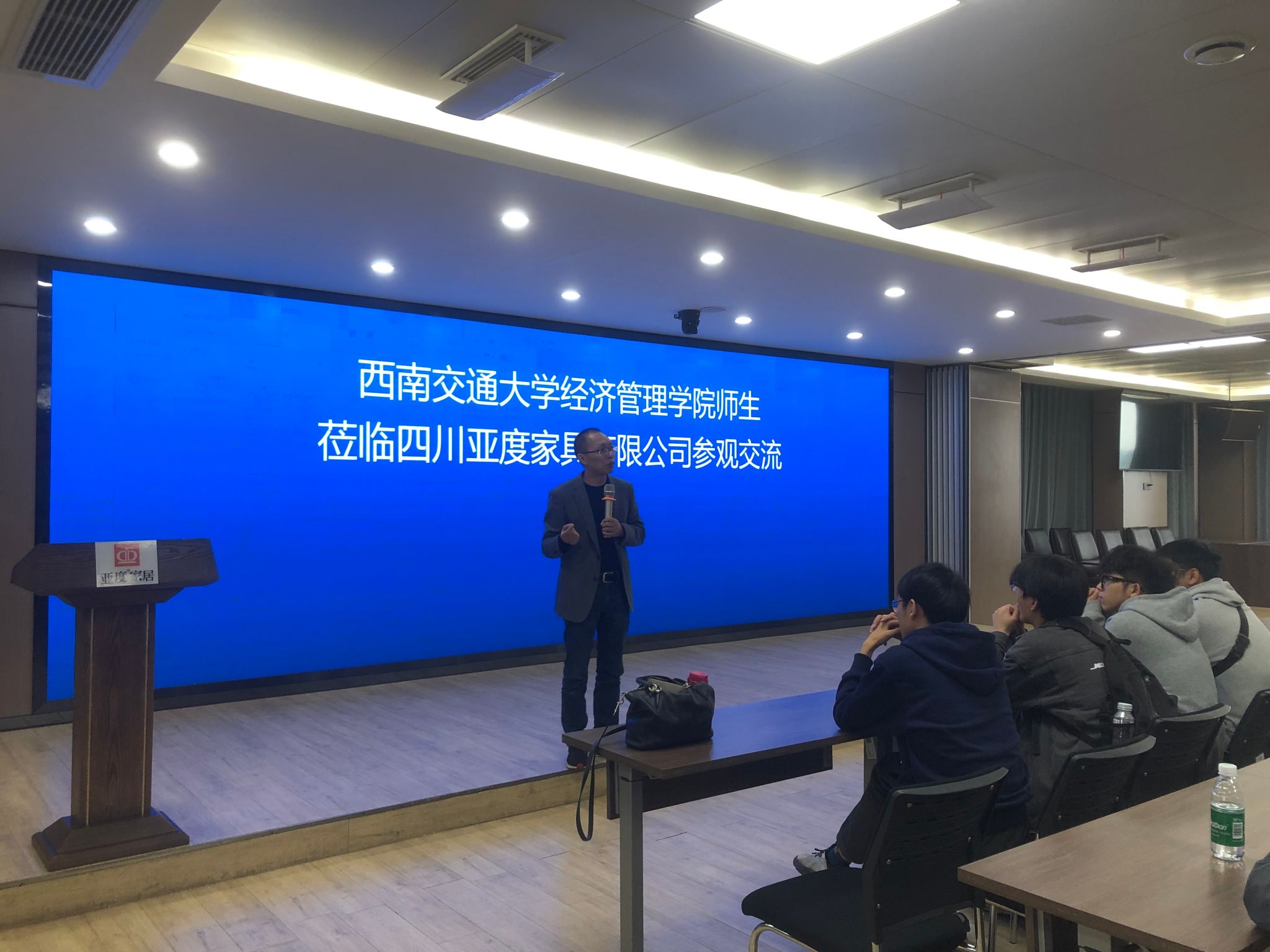 活动伊始,四川亚度家具有限公司常务副总经理胡继飞先生为同学们详细介绍了公司的发展历程、企业文化以及市场定位。他向大家展示了公司的可视化电子屏,通过系统可视化技术,展现了亚度家具在智能制造和信息化管理方面的先进成果,让同学们对现代家具制造业的科技应用有了直观的认识。