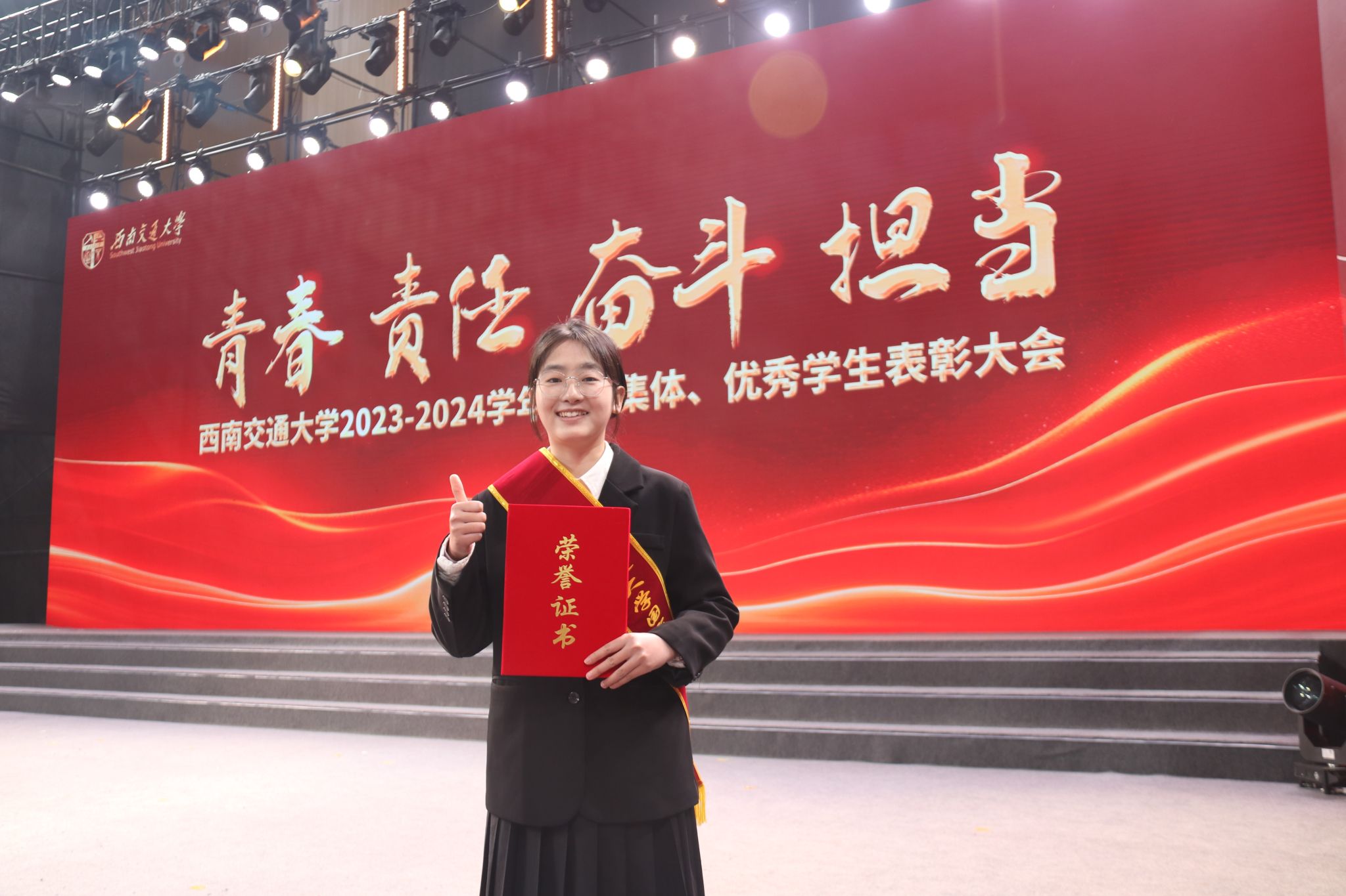 2021级本科生黄雅洁作为国家奖学金获奖代表接受表彰。刻苦是他们身上凸显出的力量,优秀是他们身上折射的符号,他们用热情,书写青春奋斗的诗篇,用榜样精神引领交大学子接续奋斗,展现了bat365官网登录入口学子昂扬向上的拼搏姿态。