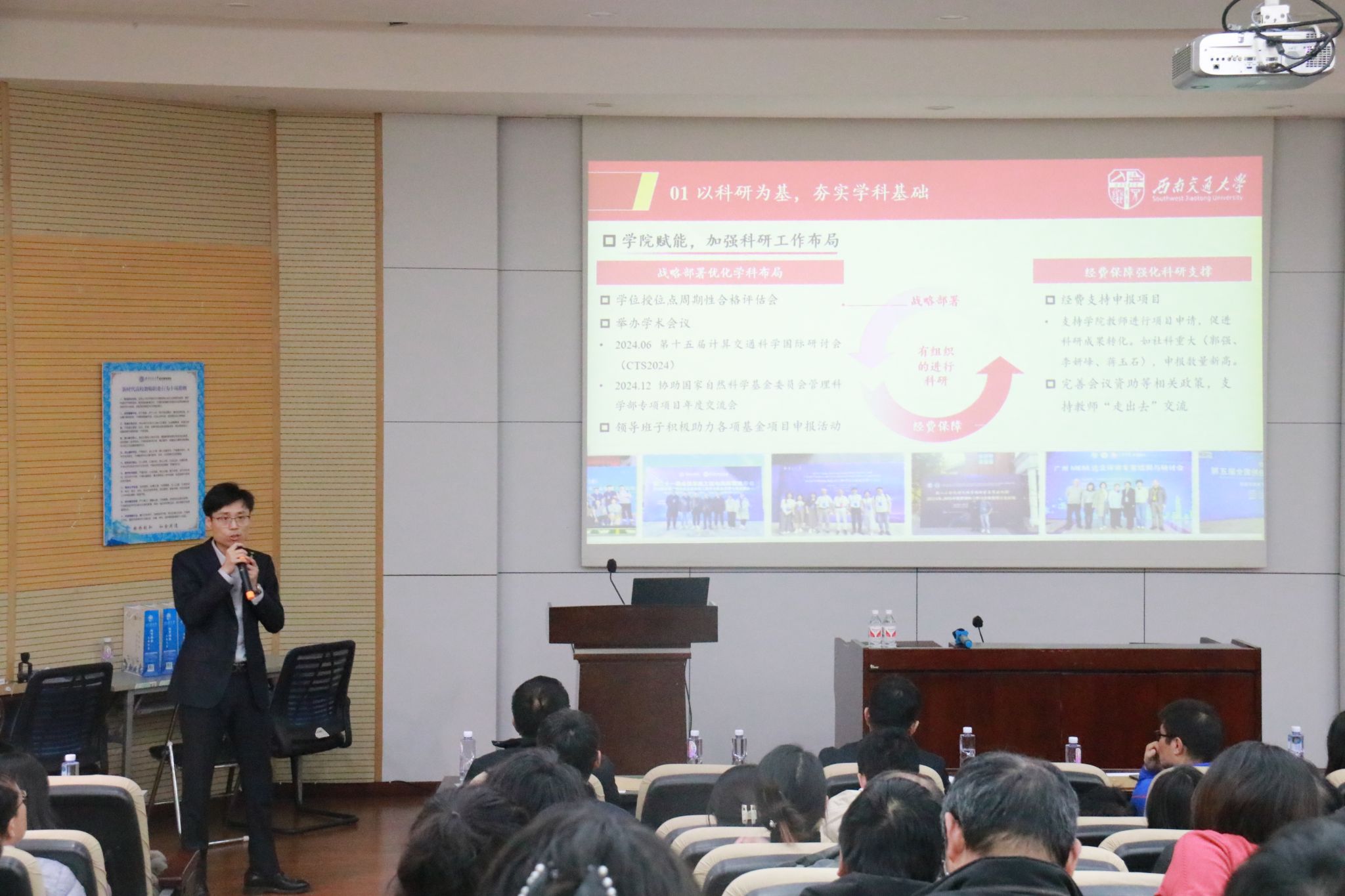学院院长韩科全面总结了学院过去一年的工作成果。韩科指出,bat365官网登录入口秉承“格物致知、和合共进”的院训精神,与改革开放同向同行、与时代发展同频共振,本年度学院打造人才集聚“强磁场”,汇聚共进“向心力”;构筑教学培养“生态圈”,锻造竞争“强筋骨”;深化科研创新“动力源”,点燃发展“新引擎”;亮出学院建设“新名片”,共筑bat365“朋友圈”,取得了显著成绩,并从高层次人才梯队、学科冲顶高水平、人才培养登新峰、国内一流影响力、支持与保障5个方面展望学院未来发展蓝图。