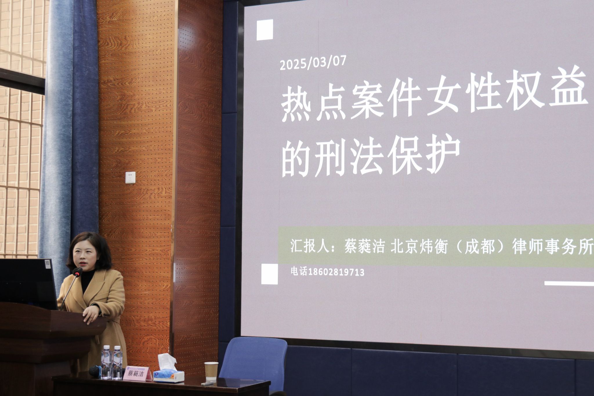 蔡蕤洁律师在主题分享中,选取了妇女权益保护的典型和热门案例,如谢女士被家暴案件、女童拐卖案件、大S相关案件等案例,通过以案说法的形式,助力消除歧视妇女,维护妇女合法权益,保护妇女人身安全,促进男女平等,引导现代女性提升维权意识和能力,倡导全社会尊重和关爱妇女,弘扬社会主义核心价值观。