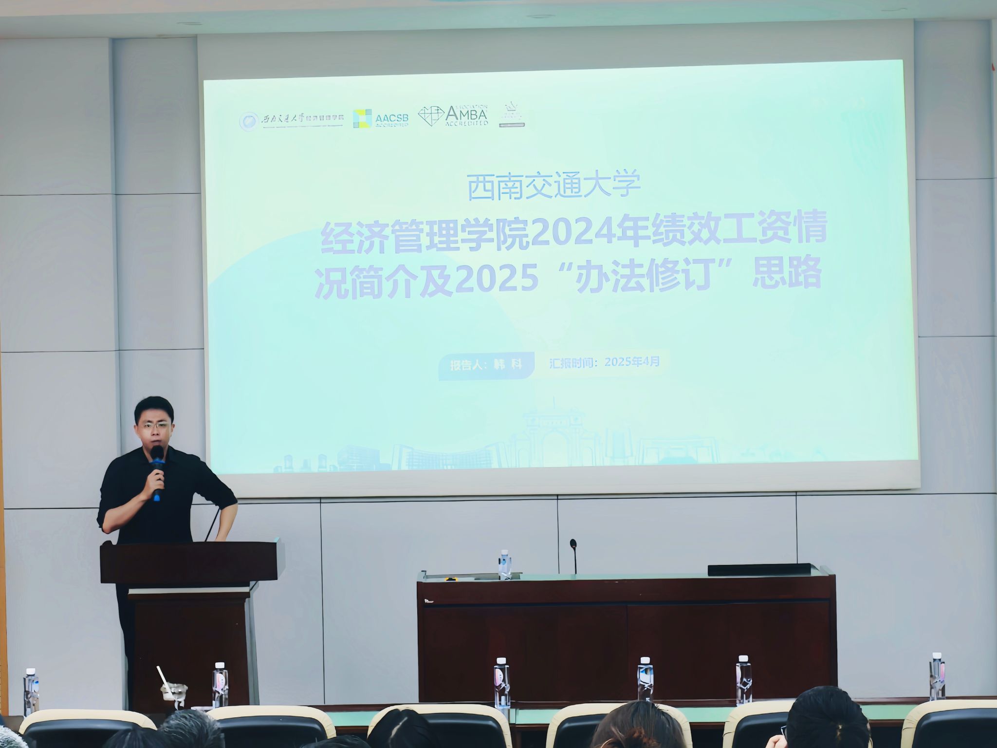 学院院长韩科就bat365官网登录入口2024年绩效工资情况及2025年修订思路进行详细说明。韩科对绩效办法修订的原则、具体措施及反馈机制作全面解读,全方位听取教职工的意见和建议。韩科指出,绩效办法修订关系教职工切身利益和学院长远发展,希望全体教职工统一思想、凝聚共识,共同推进学院治理体系不断完善。