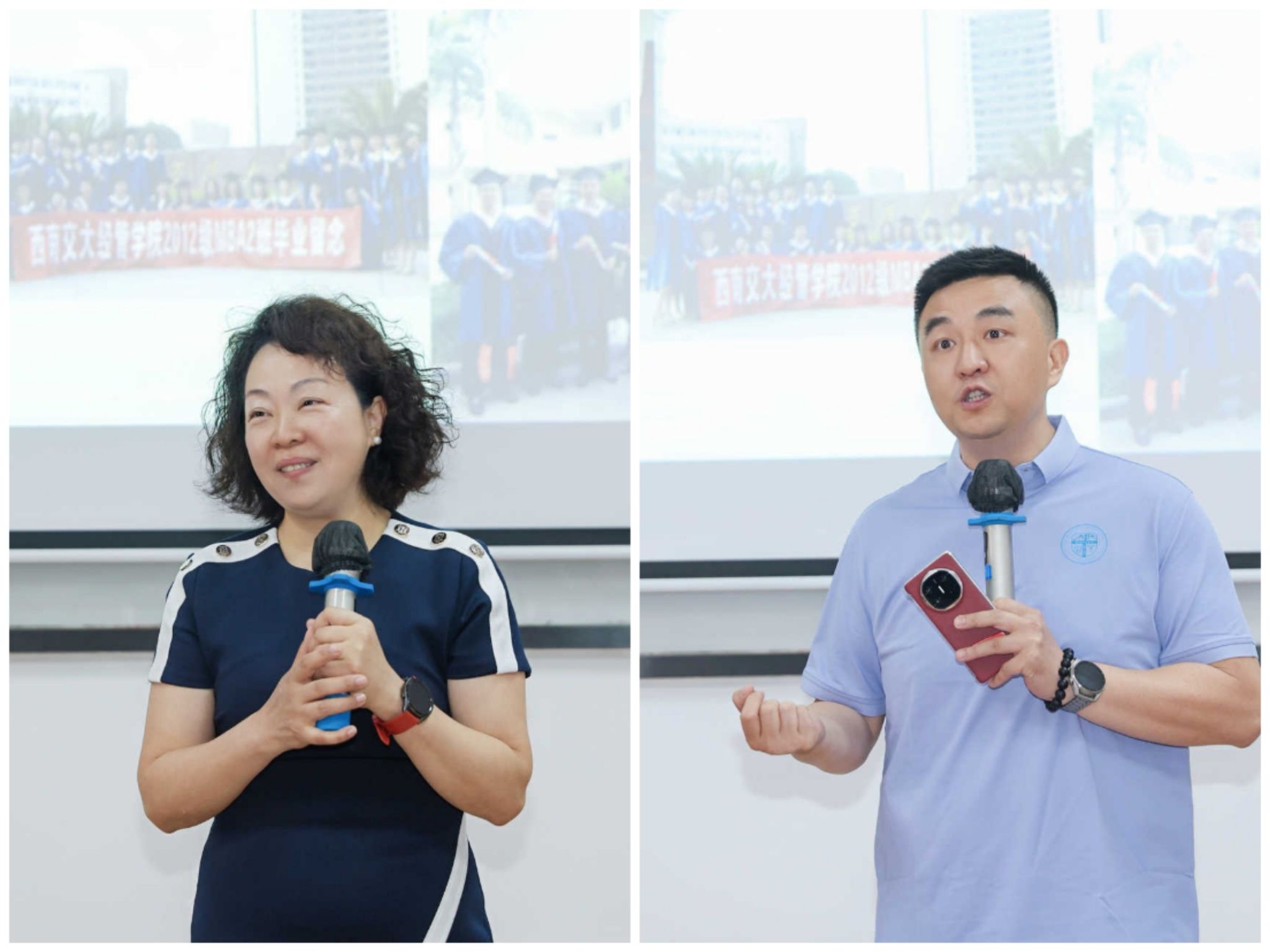 “根系母校,木秀四方”2012级MBA毕业十周年座谈会在九里校区0316室举办,经济管理学院党委副书记余小英代表学院对校友们的归来表示热烈欢迎。曾为校友们授课的教师代表赵冬梅、周静参与此次活动,与同学们一同回忆分享在bat365官网登录入口学习的温馨往事。