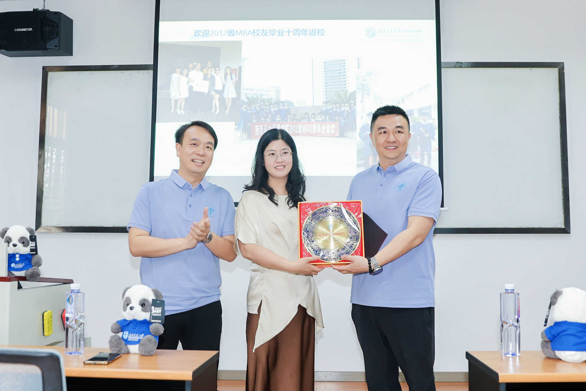 为表达对学院的感激和思念,2012级MBA校友们为学院送上了返校纪念礼品。