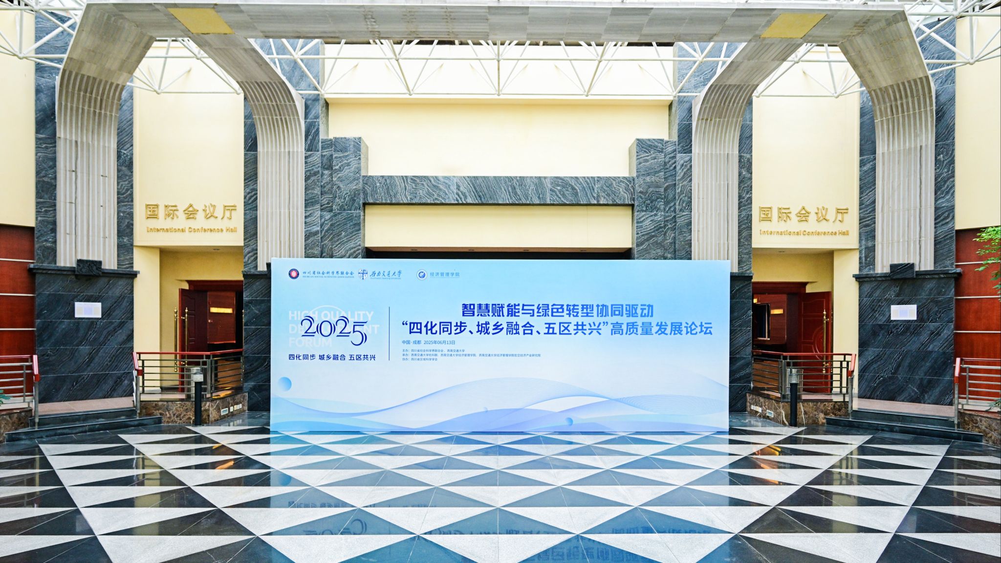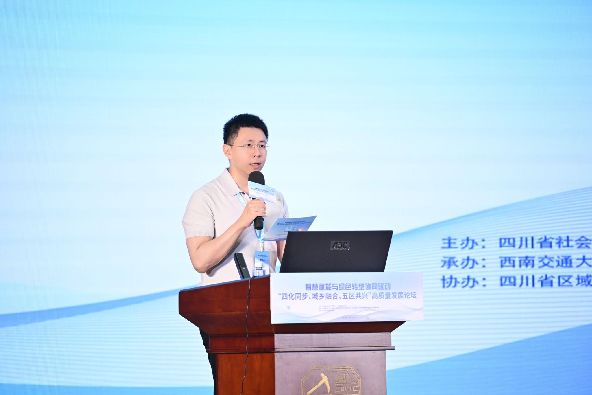 2025年6月13日,由四川省社会科学界联合会与西南交通大学共同主办,西南交通大学文科处、bat365官网登录入口承办的“四化同步、城乡融合、五区共兴”高质量发展论坛在西南交通大学九里校区国际会议厅举行。本次论坛以“智慧赋能与绿色转型协同驱动”为主题。来自国家发改委能源研究所、省委政研室、省委党校、省经信厅、省农业农村厅、省社科院等部门和省内外科研院所、高校、各市(州)社科联和相关行业学会的领导、嘉宾、代表近百人参加。论坛由西南交通大学党委副书记高平平主持。