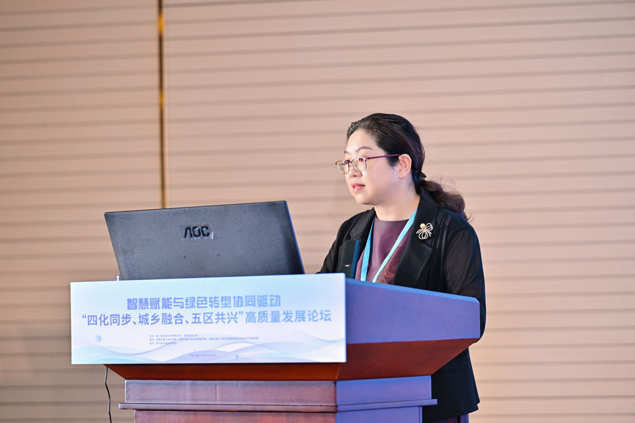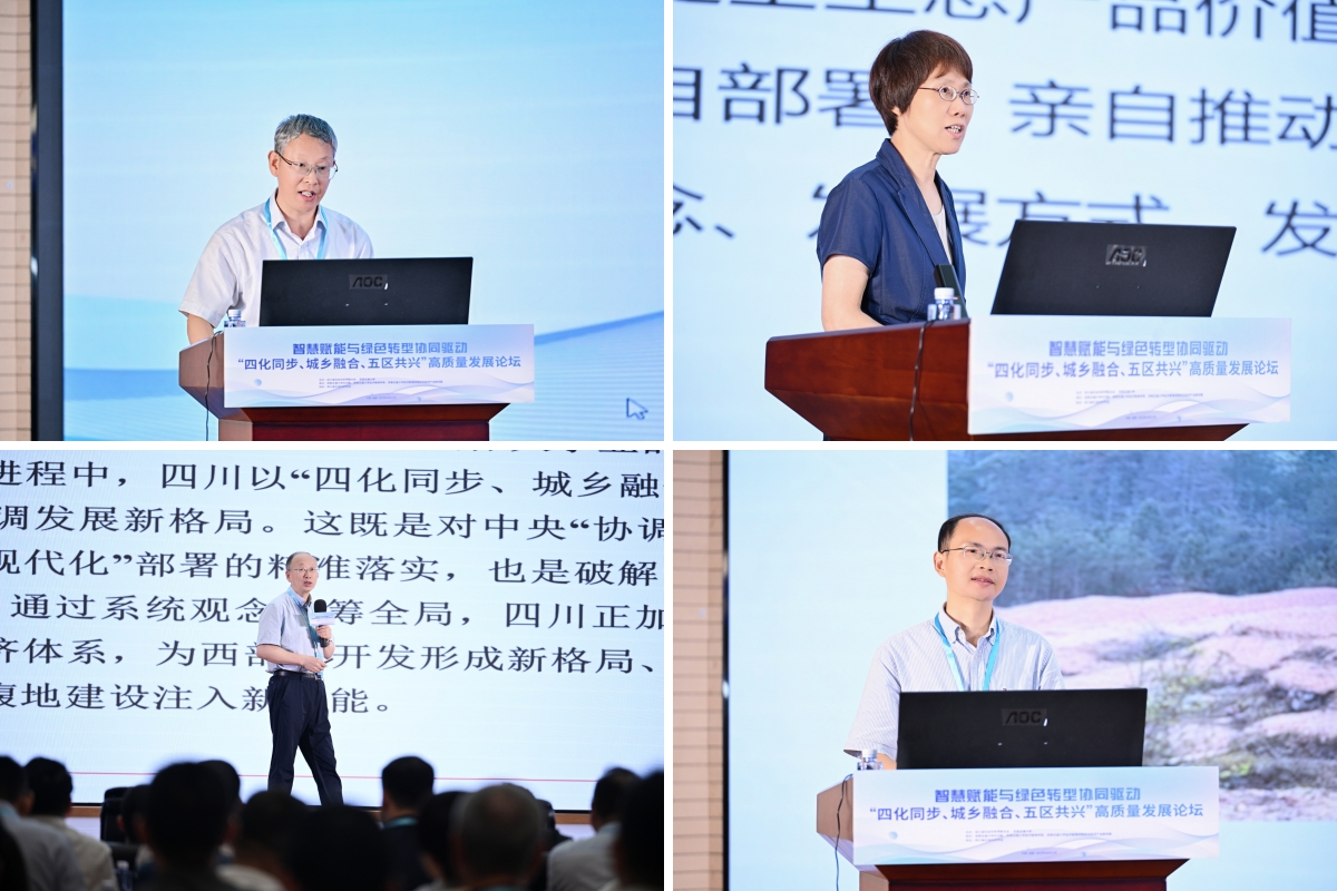 四川省社科联党组书记屈晓华在致辞中指出,省社科联以贯彻党的二十大精神及省委战略部署为首要任务,围绕中心工作搭建学术交流平台,通过前三届高质量发展论坛的成功举办,论坛已成为凝聚现代化建设智慧的重要品牌。屈晓华认为,面对资源环境约束、区域发展不平衡等问题,四川亟需战略性解决方案。“智慧赋能”和“绿色转型”的深度协同,则是抢占未来竞争制高点的战略选择。全省社科界应充分发挥思想库.智囊团作用,紧扣省委发展战略,深入一线开展调研,着力在“聚焦实践痛点深化靶向研究、强化跨界协同构建融通支撑、加速成果落地服务现实需求、固化协同网络深化平台效应”四个方面下功夫,为纵深推进“四化同步、城乡融合、五区协同”发展战略贡献社科智慧和力量。