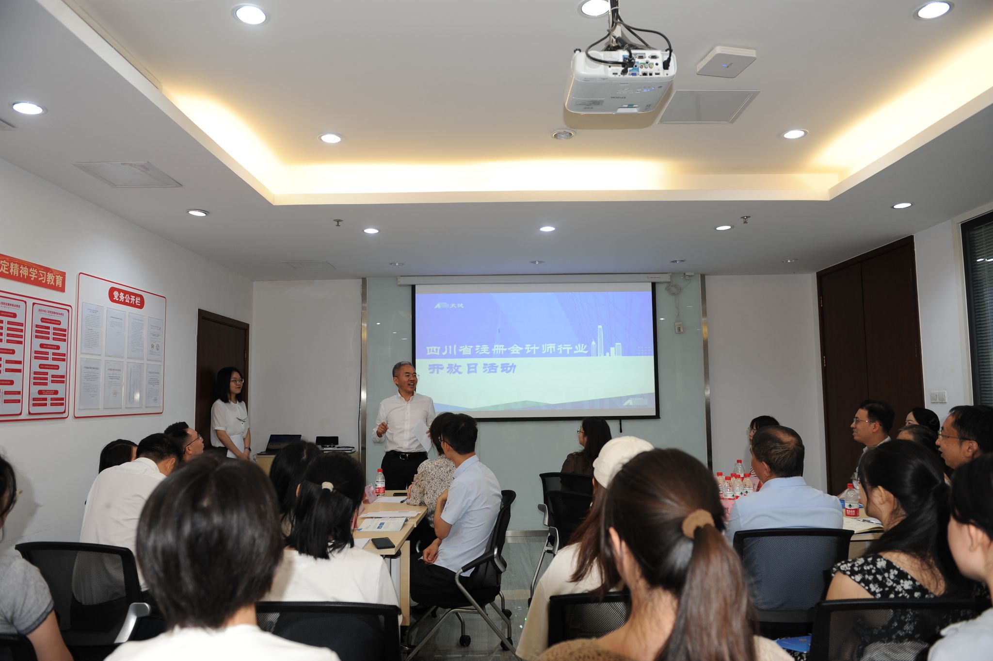 参观结束后,师生落座会议室,与事务所工作人员展开交流讨论。四川省注册会计师协会秘书长颜彦鼓励青年在会计行业坚守深耕,铸就复合型专业能力;四川分所总经理阮响华剖析了当今会计行业数字化转型以及行业边界模糊化的趋势,向交大学子发出实践邀请。随后,学院会计系主任叶勇介绍了学院会计专业的发展历史,期待通过本次交流参访进一步深化校企合作,为学生打开广阔的实践平台。
