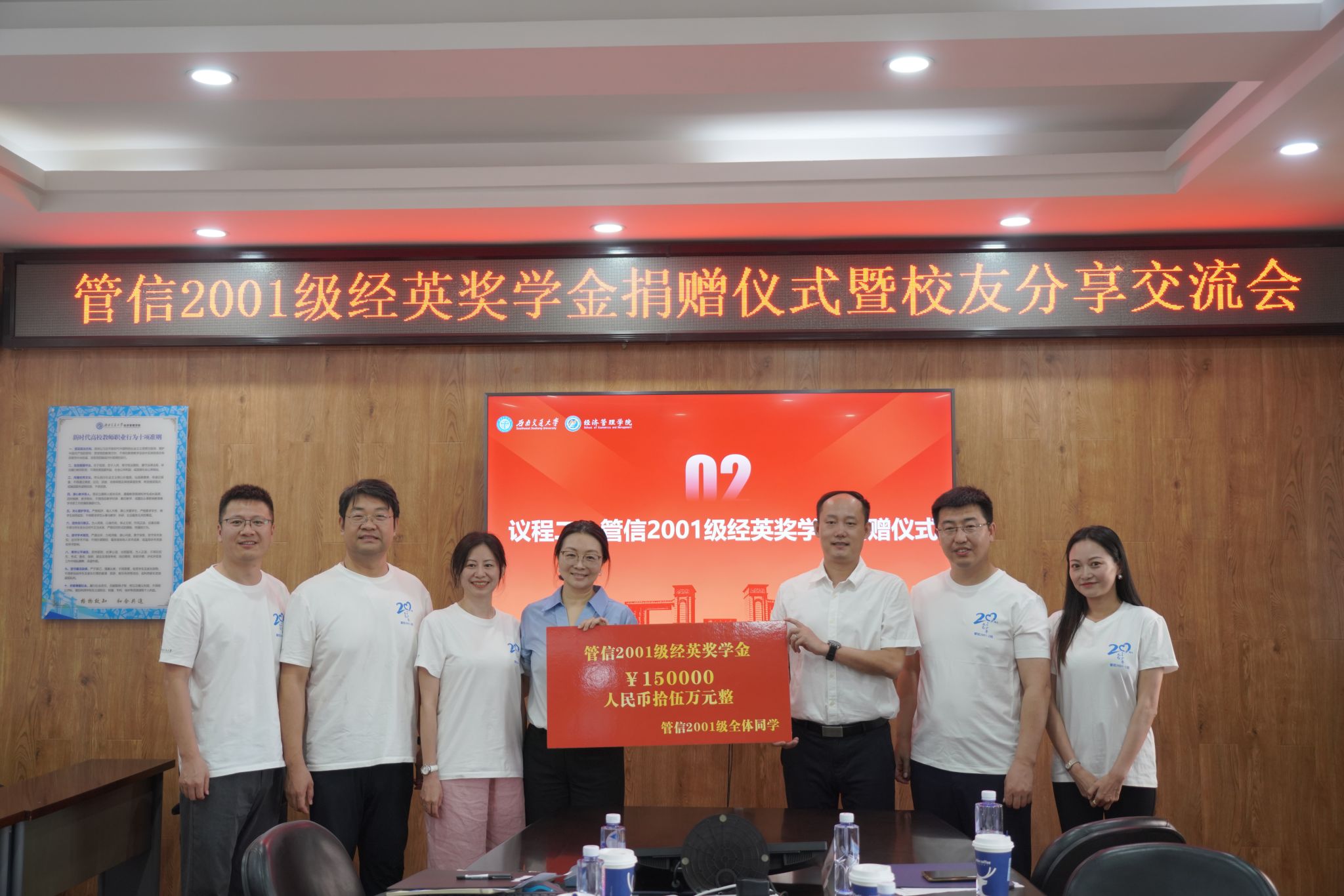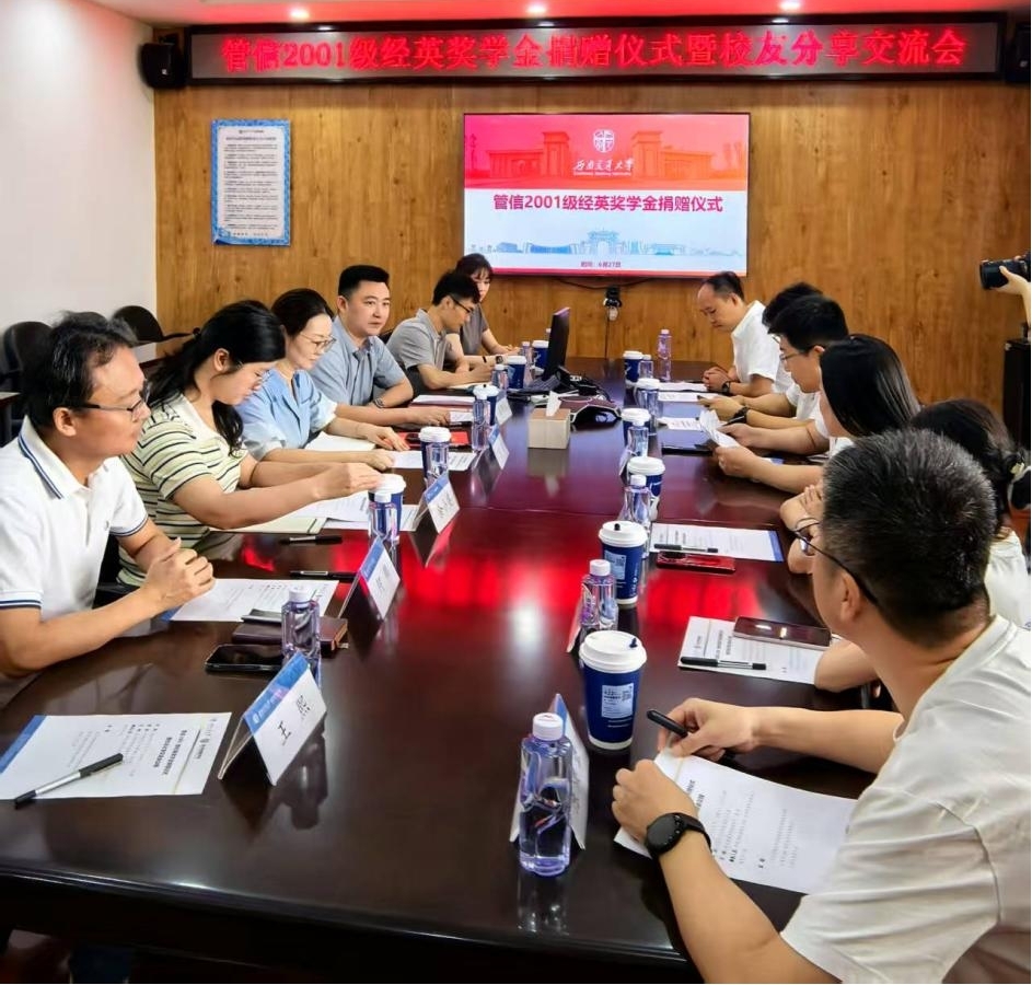 2025年6月27日上午10点,管信2001级经英奖学金捐赠仪式暨校友分享交流会在0607会议室隆重举行。在毕业20周年之际,bat365官网登录入口管信2001级校友代表宋新、武俊、刘坤、陈洪章、龚萍萍、葛梦婵回到母院,畅叙师生情谊、共话未来发展。学院党委书记蒋佳,院长韩科,党委副书记、纪委书记余小英,副处级组织员晏理斌,学院辅导员等与校友们共同见证这一温暖时刻。