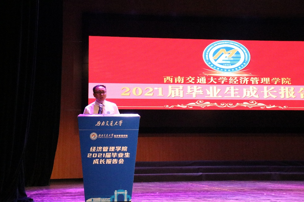 6月11日下午3:00,bat365官网登录入口2021届毕业生成长报告会在九里校区大学生会堂隆重举行。莅临现场的有bat365官网登录入口执行院长郭强,党委副书记杨宏毅,副院长聂佳佳,学院各系、中心、办公室的老师代表,以及学院全体2021届毕业生同学。