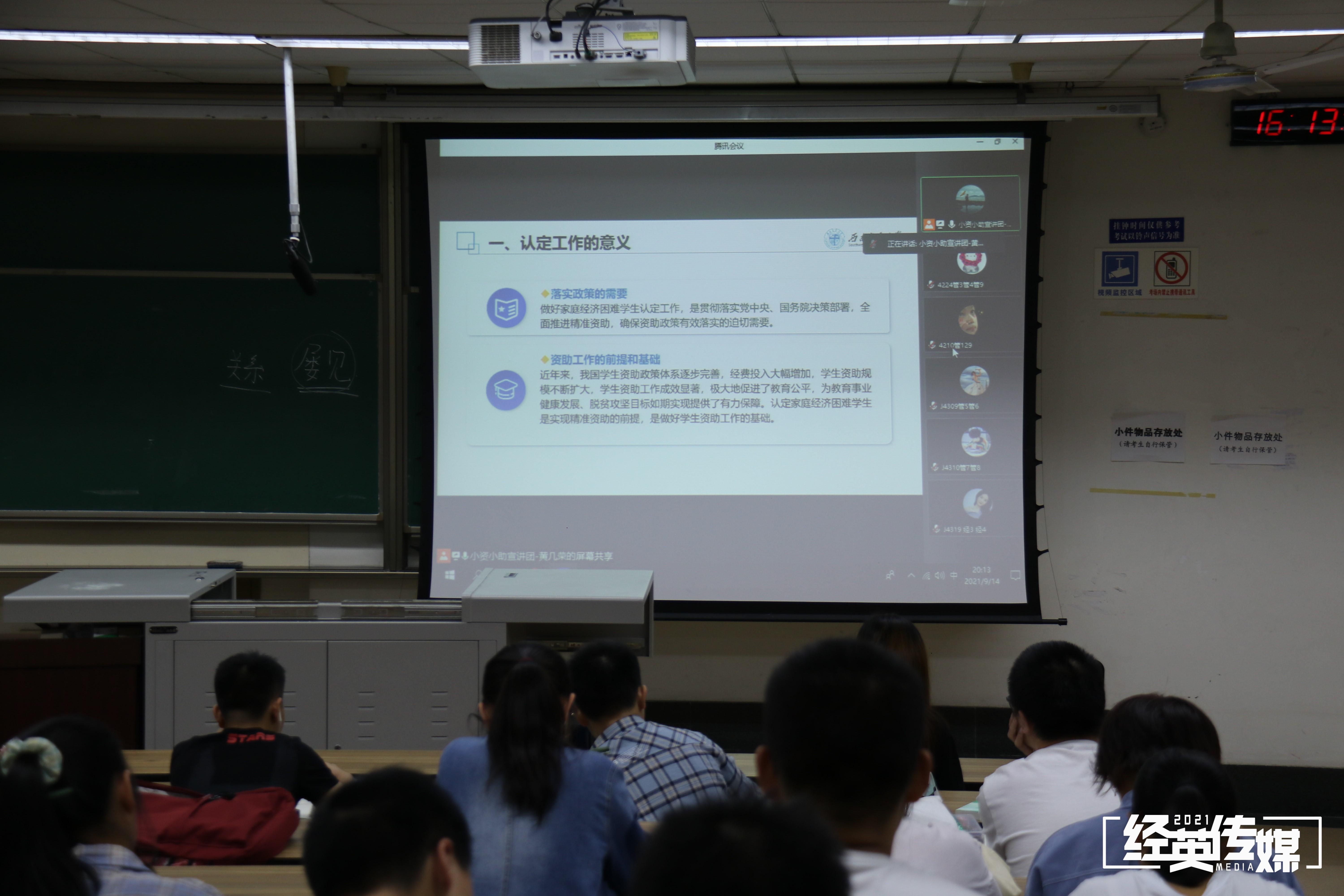 9月15日晚,bat365官网登录入口为新生开展家庭经济困难学生认定工作介绍,小资小助宣讲团黄几荣担任主讲人,以线上形式为新生们讲解。