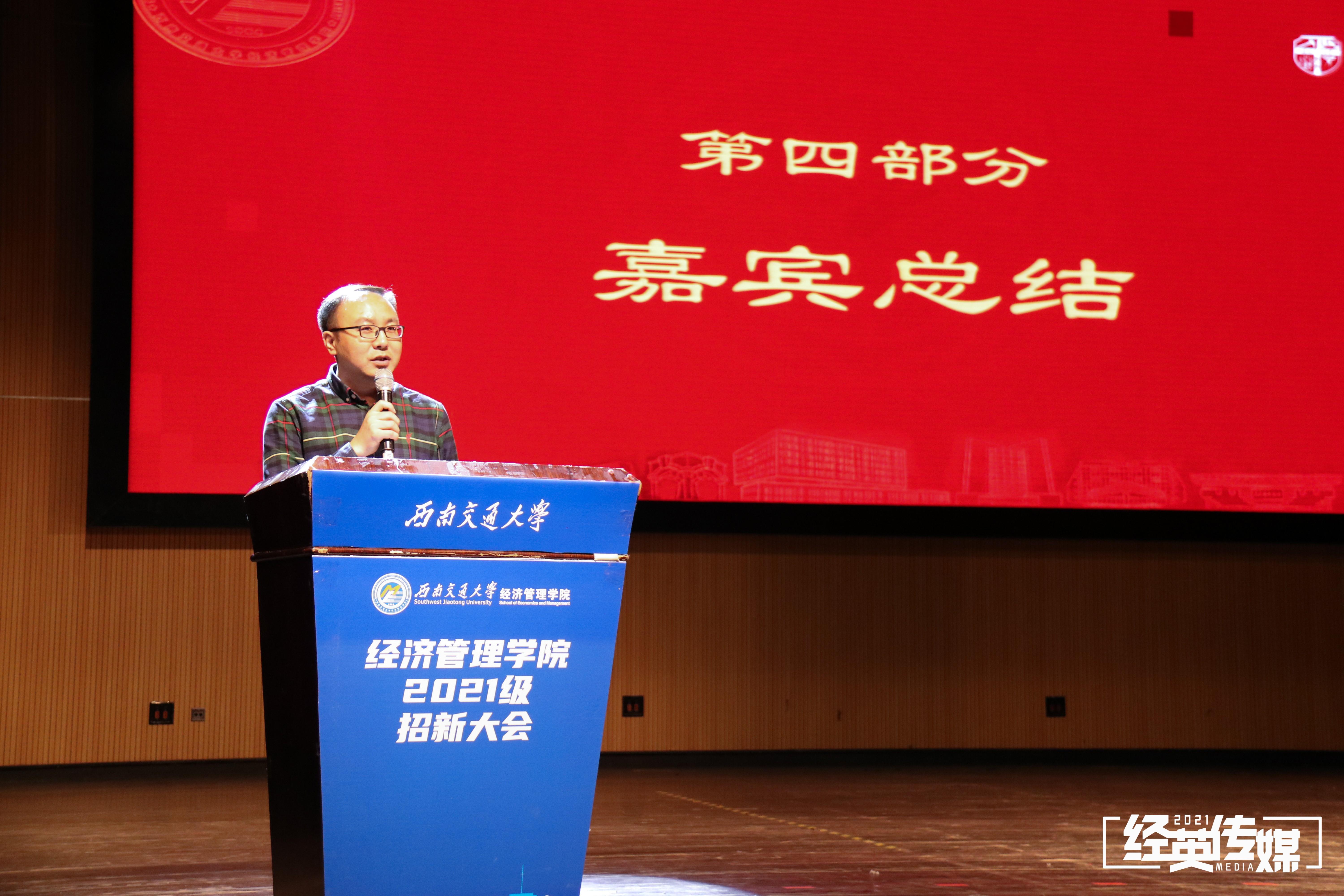 紧接着,杨宏毅对大会进行总结。他鼓励各位新同学在不影响学业的前提下,积极踊跃地参加各类组织和社团活动。同时他还为大家提出三点建议:一是学会取舍,要根据自身实际情况,合理地分配自己的时间;二是新生们认应识到大学的使命不是“竞争”,而是“成长”,要专注提高自身综合素质;三是大学为同学们提供了各种尝试机会,也赋予了同学们许多权利,同学们要把握机遇,学会做出适合自己的选择,开拓自己的天地,让自己变得更加成熟。