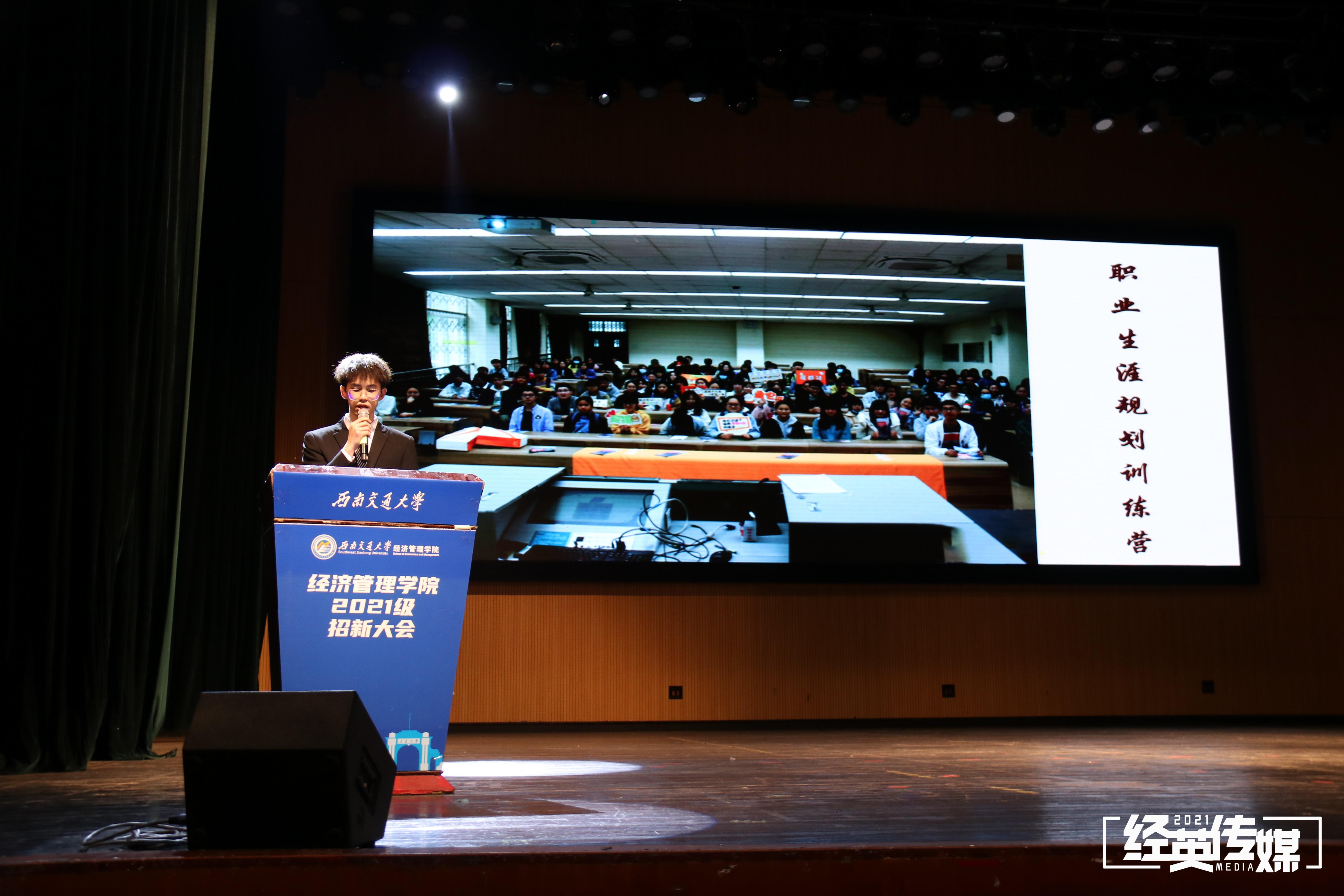 接下来,六大团学组织按照青年建设中心、学生会、青年志愿者协会、创新创业中心、经英传媒中心、班级联合会的顺序,分别为同学们带来精彩的组织招新视频。各位主席及理事长依次发言,为同学们更详细地介绍组织的职能、活动和部门分工。