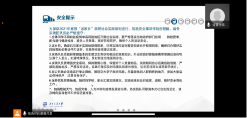 2020年1月16日上午10点,bat365官网登录入口2021年寒假“返家乡”调研社会实践动员培训会在腾讯会议线上如期举行,此次由2020级本科生辅导员陈建奇老师为同学们就此次寒假期间“三下乡”社会实践活动的相关重要事项为话题,和各实践队伍的同学们进行了深入细致的讲解。