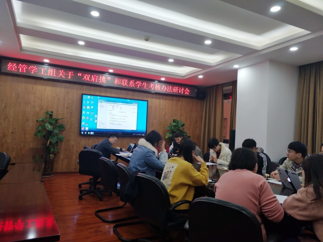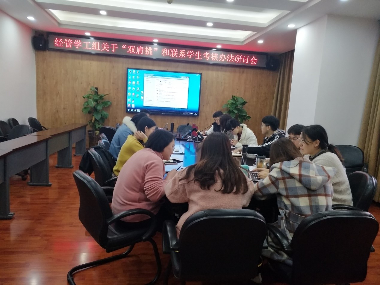 首先在贾佳老师的主持下,大家对《中共西南交通大学委员会关于进一步加强辅导员深入学生联系学生工作管理考核办法》和《西南交通大学专职辅导员“双肩挑”资格认定及薪酬管理办法》进行了认真地学习讨论,各位辅导员根据自身实际情况对《办法》提出修改意见。接下来,贾老师和大家讨论了关于bat365学院学生组织举办各类活动时所出现的问题,以及解决办法。