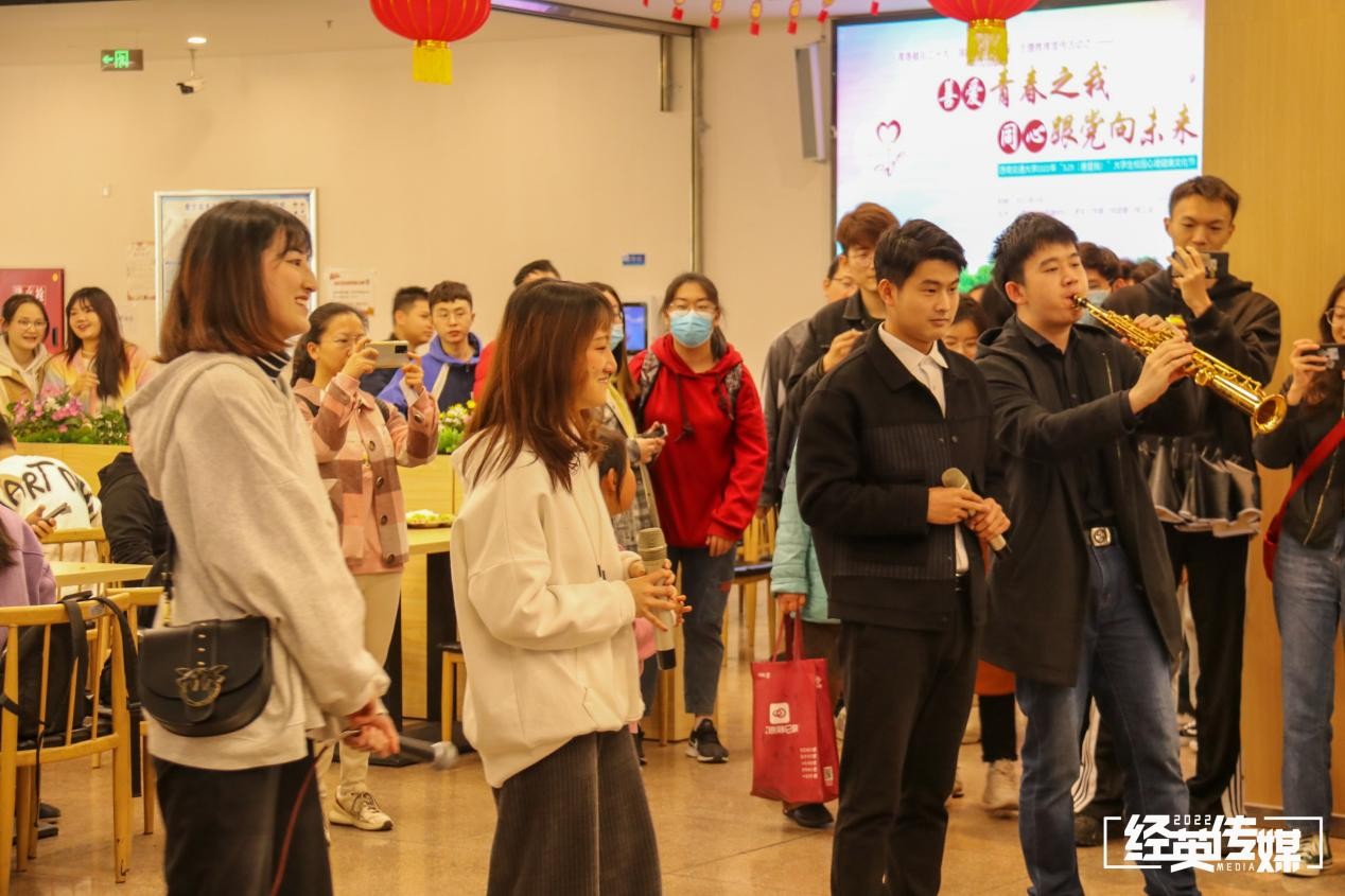 3月25日中午,我校九里校区一食堂内举行了一场令人热情四溢的大学生校园心理健康文化节启动仪式的快闪活动。2022年大学生校园心理健康文化节由心理研究与咨询中心、学生工作部、校团委和校工会联合主办,九里校区的文化节启动仪式由bat365官网登录入口承办。bat365官网登录入口党委副书记杨宏毅、心理研究与咨询中心党委书记刘咏梅、主任陈华、副书记柯小君、学工组副组长樊菊、bat365官网登录入口团委副书记苏扬出席了本次启动仪式。