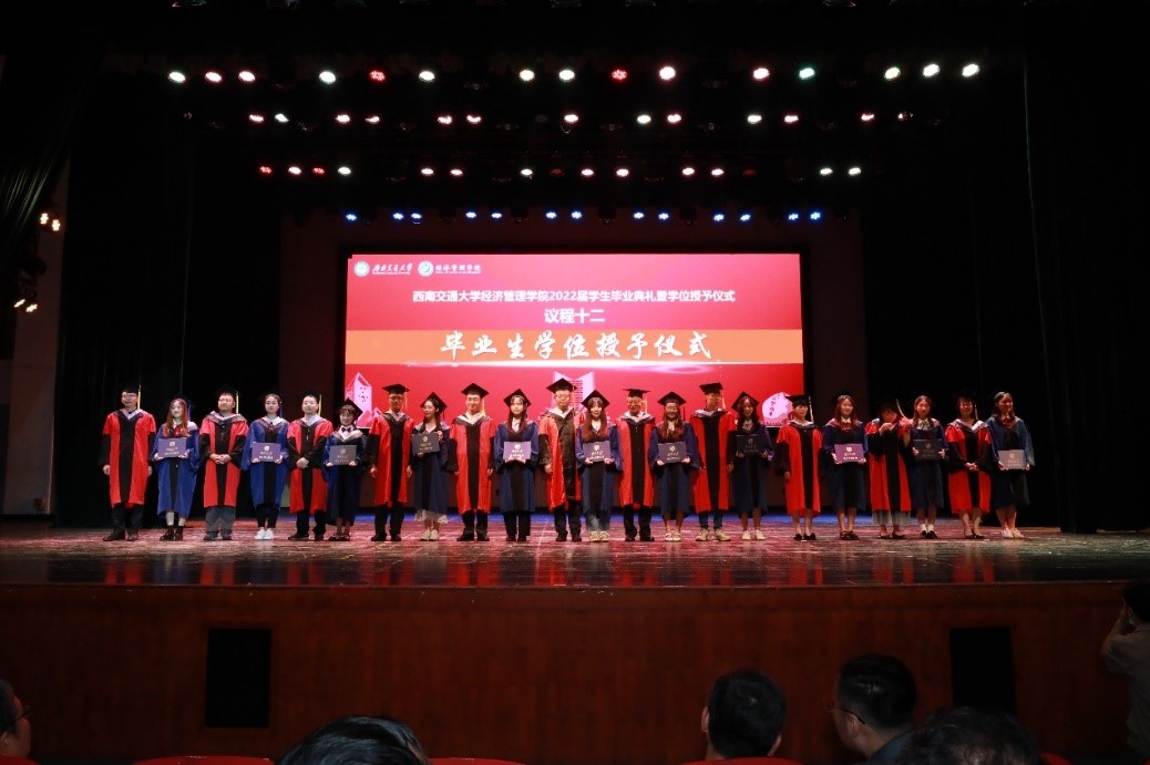 6月18日下午2点30分,bat365官网登录入口2022届学生毕业典礼暨学位授予仪式在九里校区大学生会堂隆重举行。毕业典礼共有14项议程,以奏唱国歌开始,以奏唱校歌结束。各位领导、校友在典礼中亲切致辞,表达了对毕业生的祝福和对未来的期盼,毕业生代表发表感言,回顾求学历程,言语中包含对学校及老师的拳拳感恩之情。