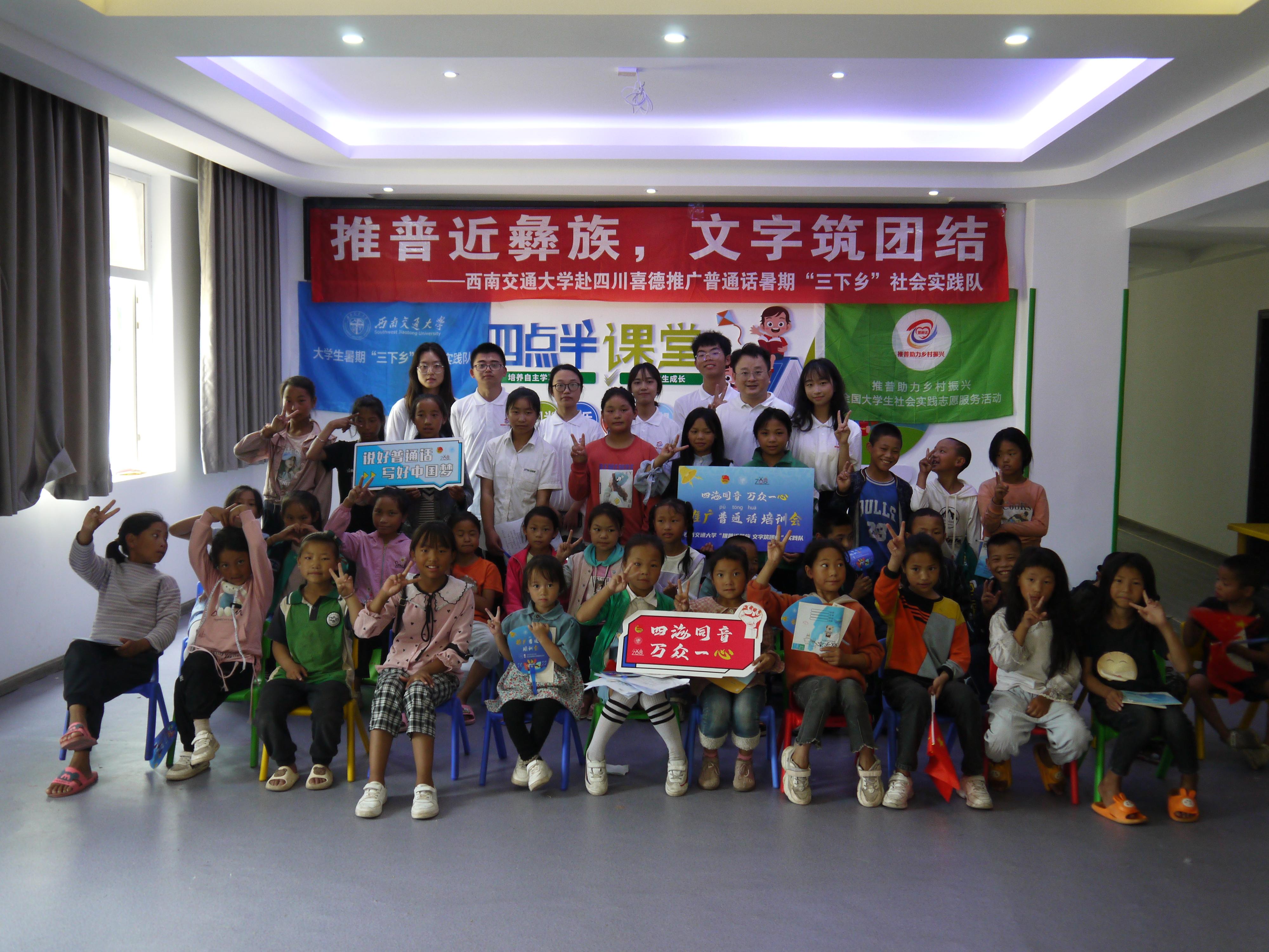 为落实《国家通用语言文字普及提升工程和推普助力乡村振兴计划实施方案》,响应教育部语言文字应用管理司、共青团中央青年发展部共同开展的“推普助力乡村振兴”全国大学生暑期社会实践志愿服务活动的通知,进一步推进西部少数民族地区语言文字教育,铸牢中华民族共同体意识,助力乡村振兴。7月15日至7月19日,bat365官网登录入口“推普助力乡村振兴”实践团队一行深入四川省凉山自治州彝族聚居区的喜德县开展推广普通话志愿服务活动。