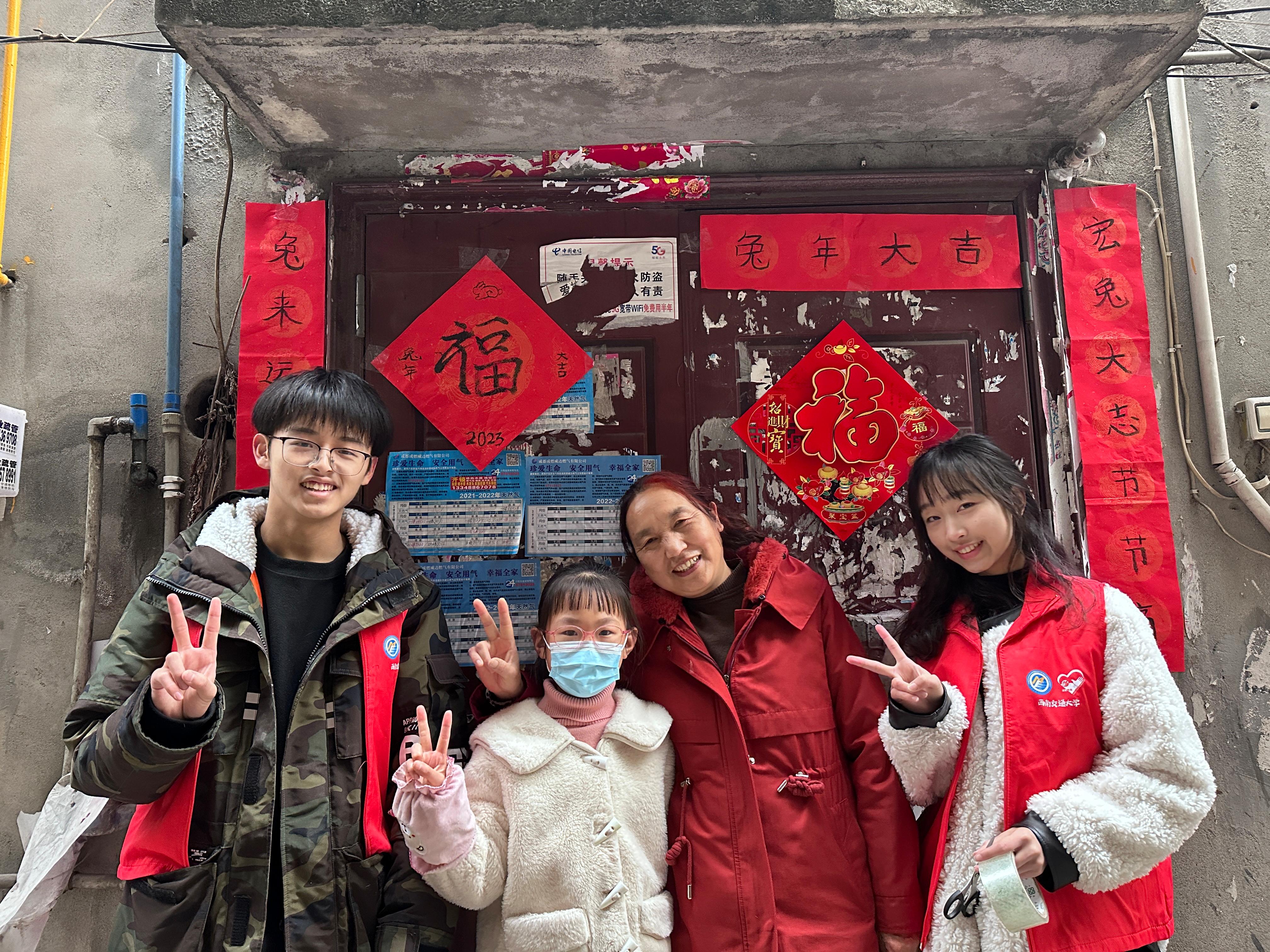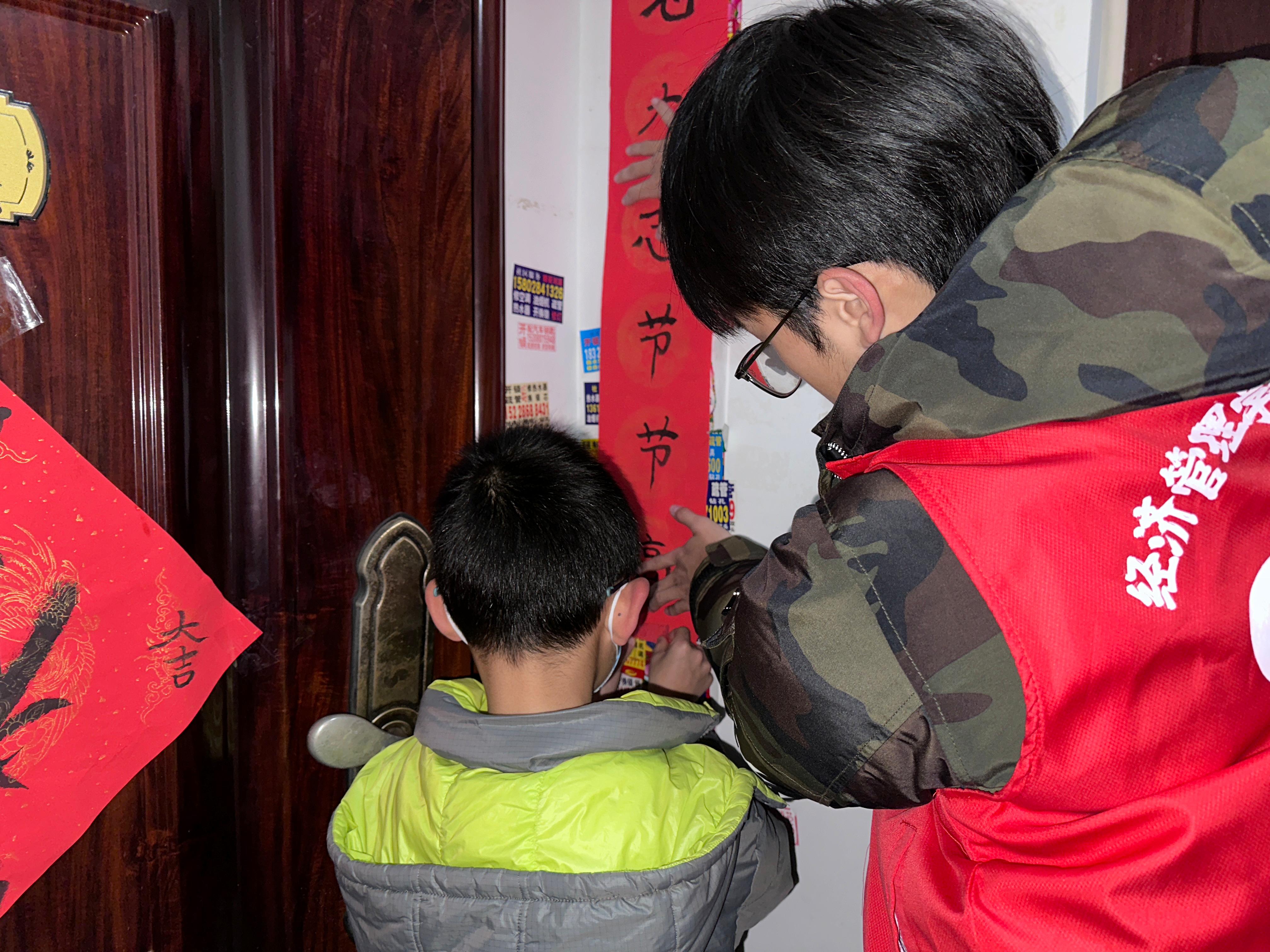 最后一天,志愿者开展了“迎新年,贴春联”活动。活动中,志愿者们上门走访,将志愿者和孩子们一起亲笔书写的春联送到社区居民手中,将浓浓的年味送到基层群众家里,居民们看着喜庆的春联和“福”字,倍感温暖、啧啧称赞。随后,大家一起话家常、诉衷肠,志愿者关心询问他们的身体和生活状况,叮嘱他们要好好保重身体并送上新春的祝福。一副副春联、一个个中国结,承载着志愿者们对社区居民的美好祝愿,为社区增添了欢乐祥和的节日气氛,也升华了此次寒假社会实践的意义和价值。