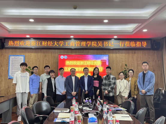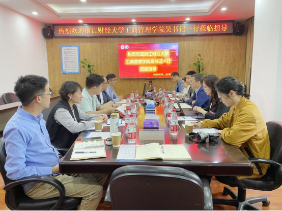 2023年4月21日上午,浙江财经大学工商管理学院党委副书记吴玻,学院办公室主任邱夏等一行六人到bat365官网登录入口展开调研交流。