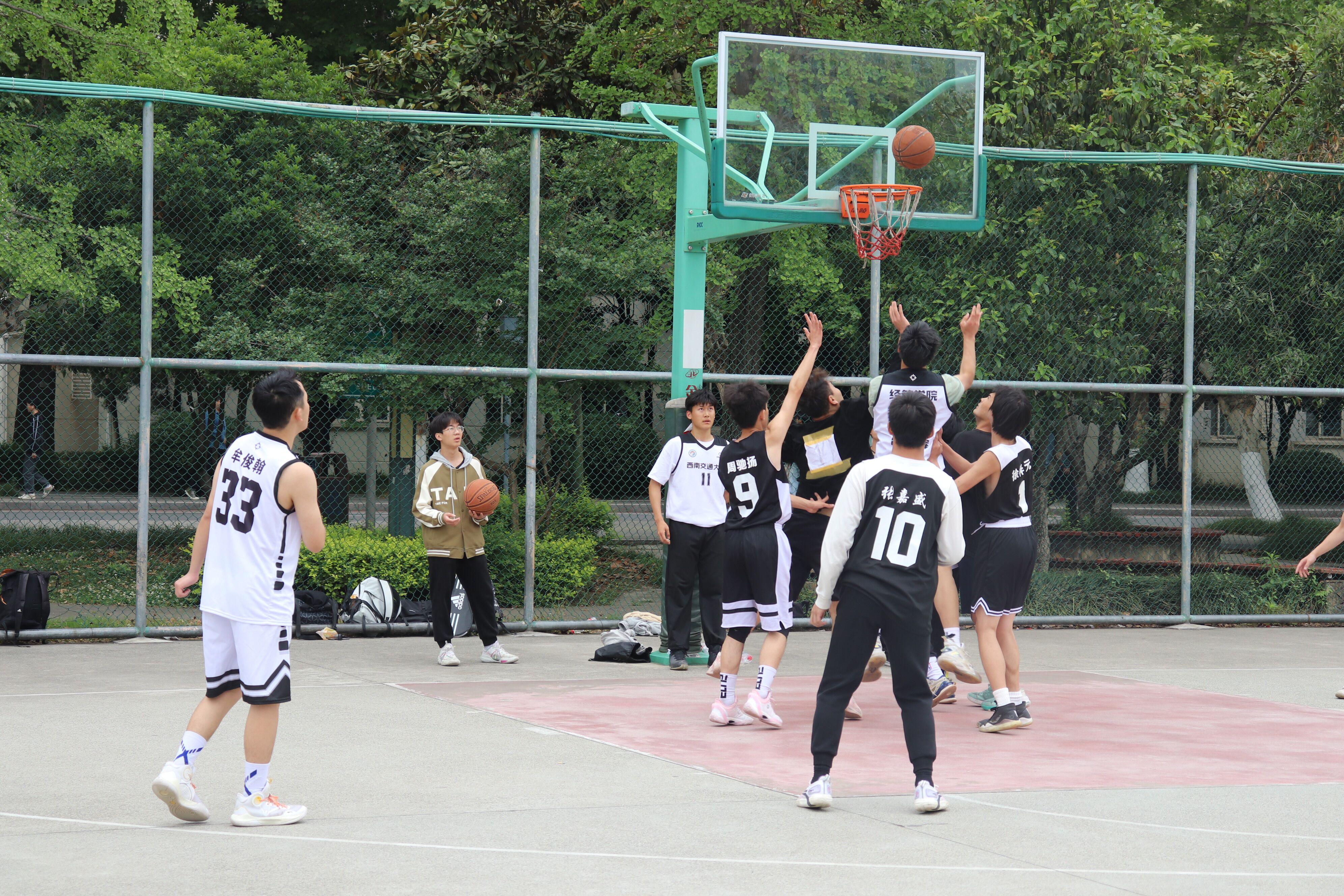 在热烈的掌声中,杨宏毅老师、陈建奇老师为揭幕战的两场比赛开球。哨声响起,激烈的角逐即刻展开。比赛场上气氛紧张而热烈,欢呼声此起彼伏,双方队员你争我夺、穿插跑位,挡拆掩护、突破传球,充分展现了“交子”们敢闯敢拼、开拓进取的青春风采。激战过后,有点is队以56:49战胜镜湖大乌龟队,梅狸猫开Amagi的门队以67:23战胜bat365研究生2队,揭幕战圆满落幕。