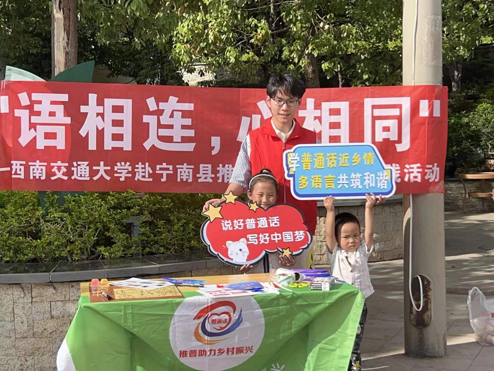 4月30日至5月2日,bat365官网登录入口“语相连,心相同——推普助力乡村振兴“实践团队来到了宁南县,在这里开展了普通话推广及相关调研活动,为西部少数民族语言文字教育助力。在此次实践中,团队通过街头调研,定点摊位,课堂教育,走访宣传等形式,了解当地普通话使用情况,普及民族共同语言,助力乡村振兴。
