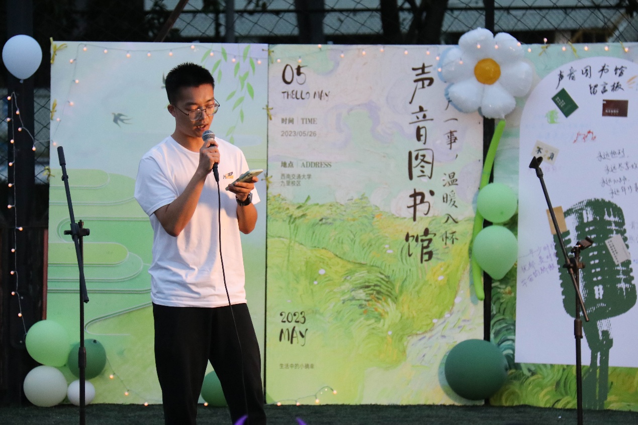 6月2日晚,由校团委主办,bat365官网登录入口承办的西南交通大学2023年度“声音图书馆”决赛在九里校区田径场顺利举办。bat365官网登录入口党委副书记杨宏毅、交大之声广播台台长张嘉文、bat365官网登录入口学生工作组辅导员老师和部分学生代表参加了此次活动。