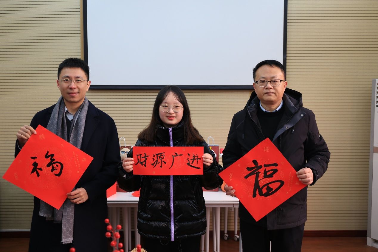 学院还为同学们准备了书本文具、暖心饭盒、贺岁玩偶等新年盲盒礼物,同学们踊跃抽取,热闹非凡。师生同写新春对联,不仅活跃了留校学生们的假期生活,也进一步营造了文明祥和的校园文化氛围,礼物虽小,但传递给同学们的浓浓情意将永远被铭记于心。