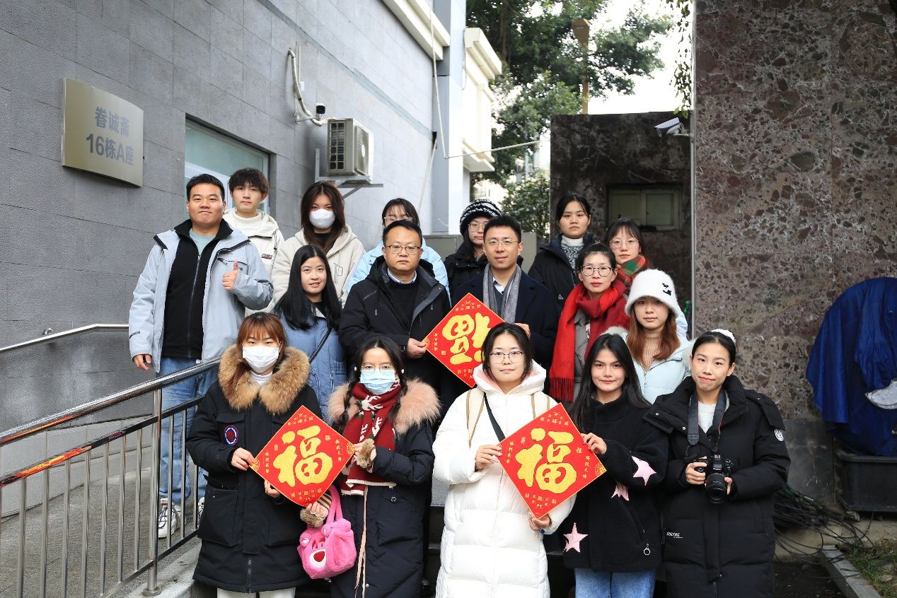 辞别玉兔迎金龙,新年气象乐融融。为营造温馨热闹的过年氛围,关心关爱学院留校学生,精准掌握寒假期间学生的学习生活、身心健康和心理思想动态,助力学生健康成长,2024年1月24日下午,bat365官网登录入口迎新春系列活动顺利开展,学院党委书记郭强、院长韩科、党委副书记余小英以及辅导员一行代表学院走访慰问寒假留校学生,并与学生们一起贴春联、写福字,为学生送去温暖的新年祝福。