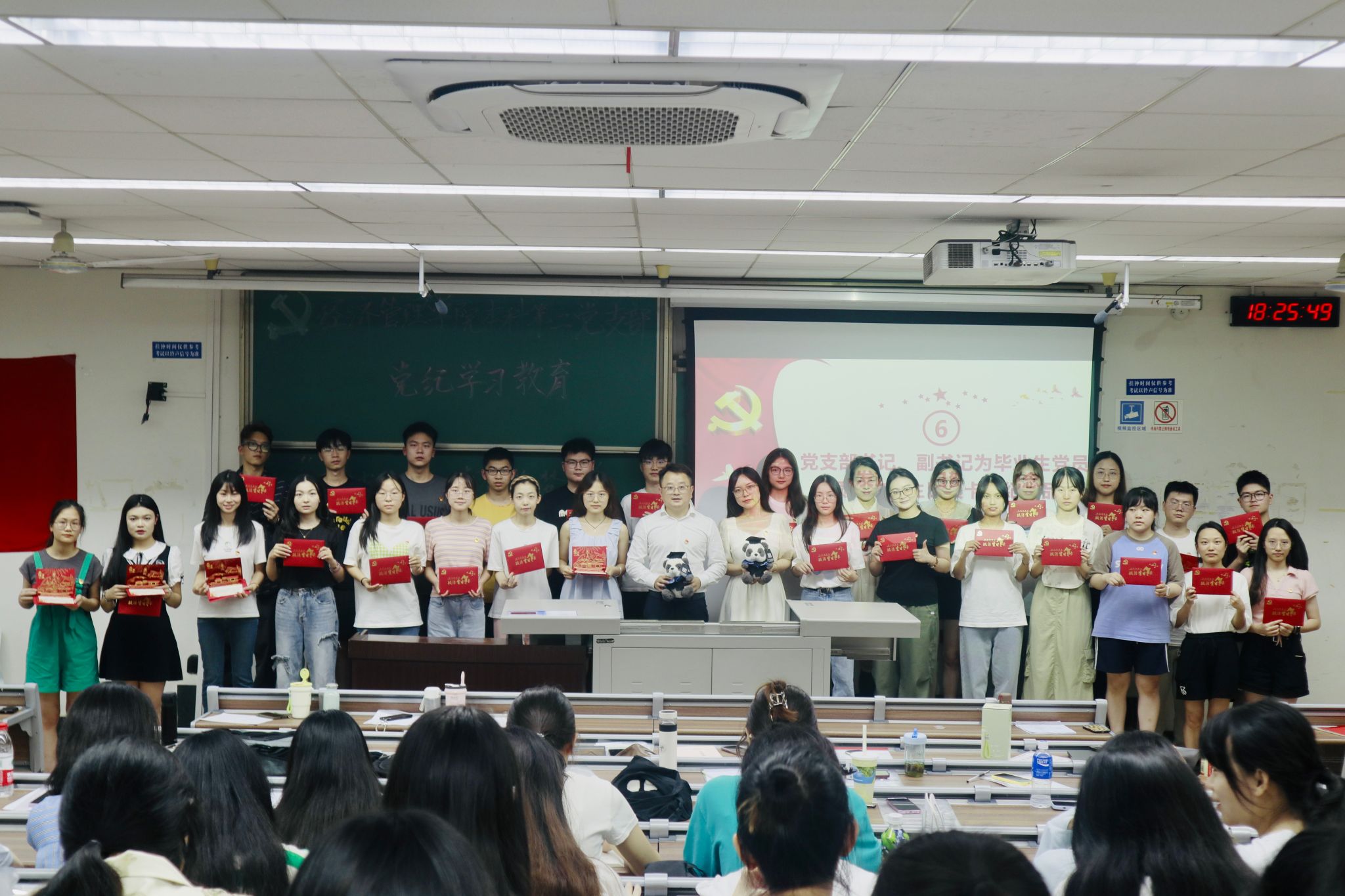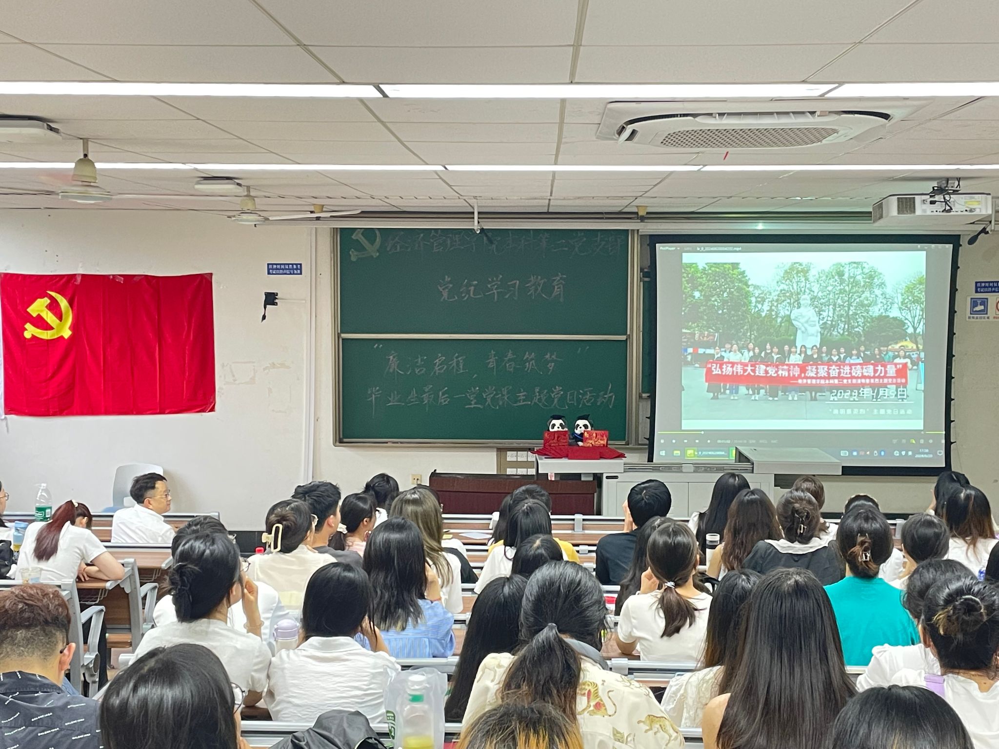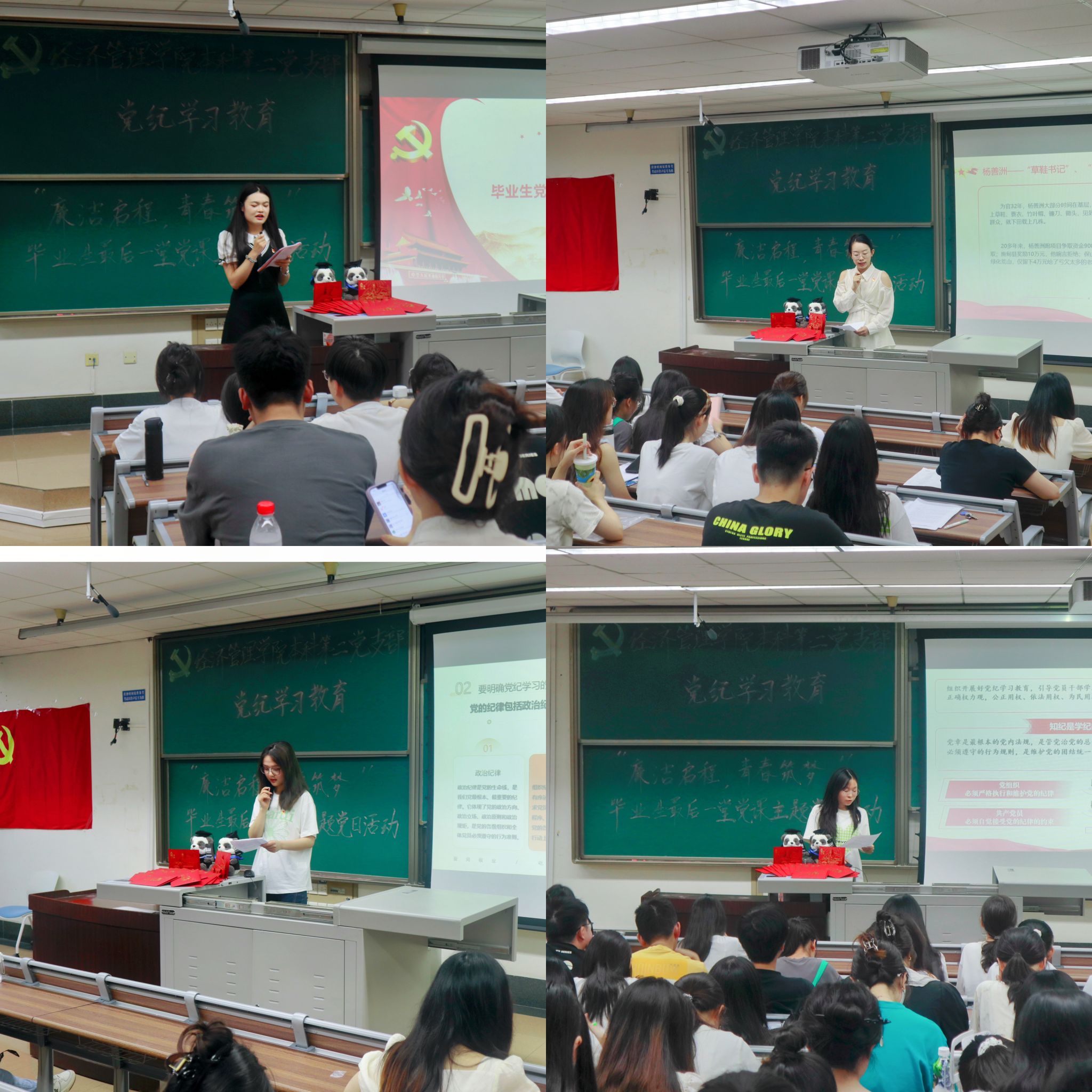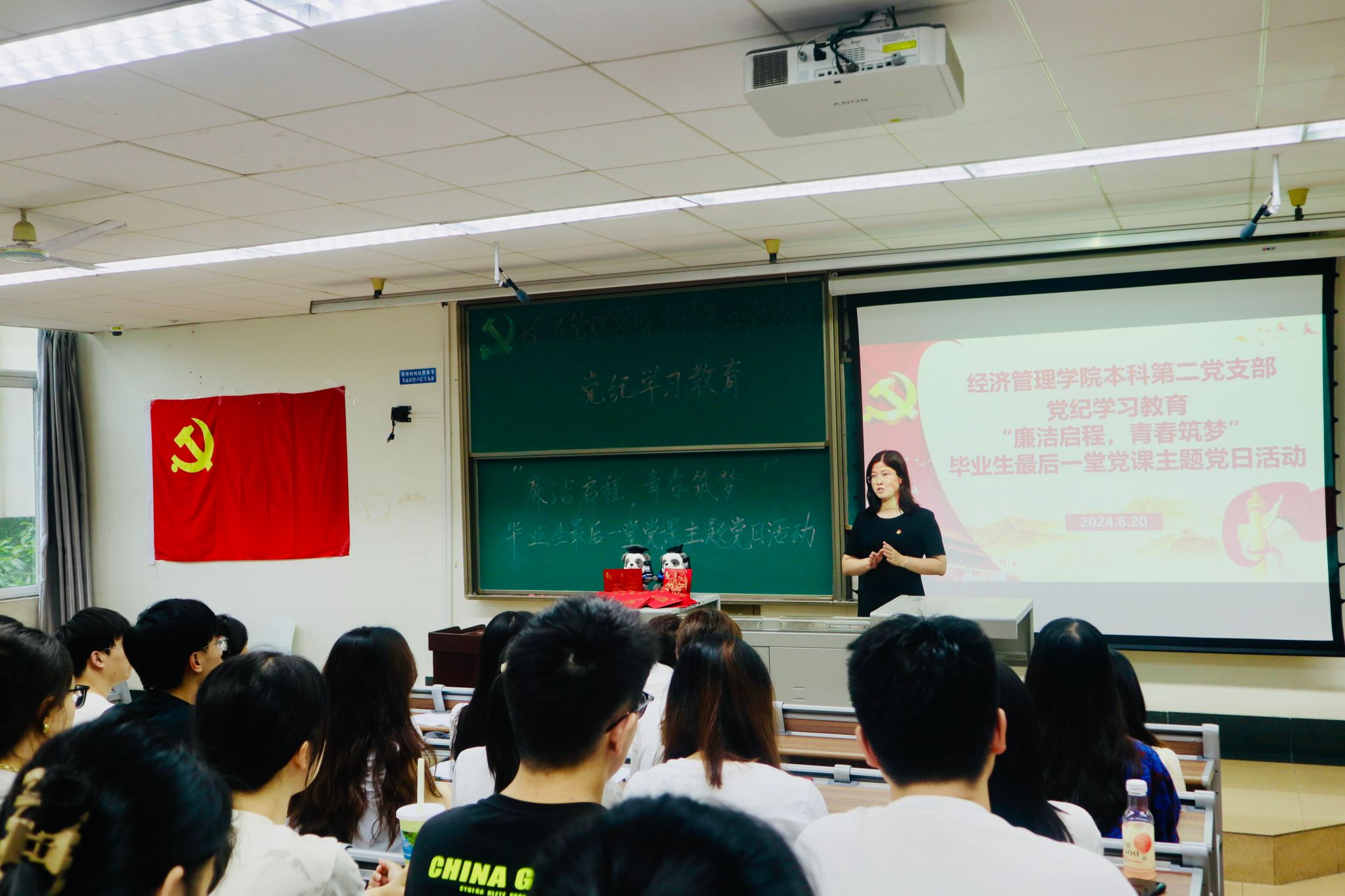 为深入学习贯彻习近平新时代中国特色社会主义思想和党的二十大精神,开展好党纪学习教育,进一步增强毕业生党员的党性意识和社会责任感,6月20日,bat365官网登录入口本科第二党支部于J4310开展党纪学习教育——“廉洁启程,青春筑梦”毕业生最后一堂党课主题党日活动。