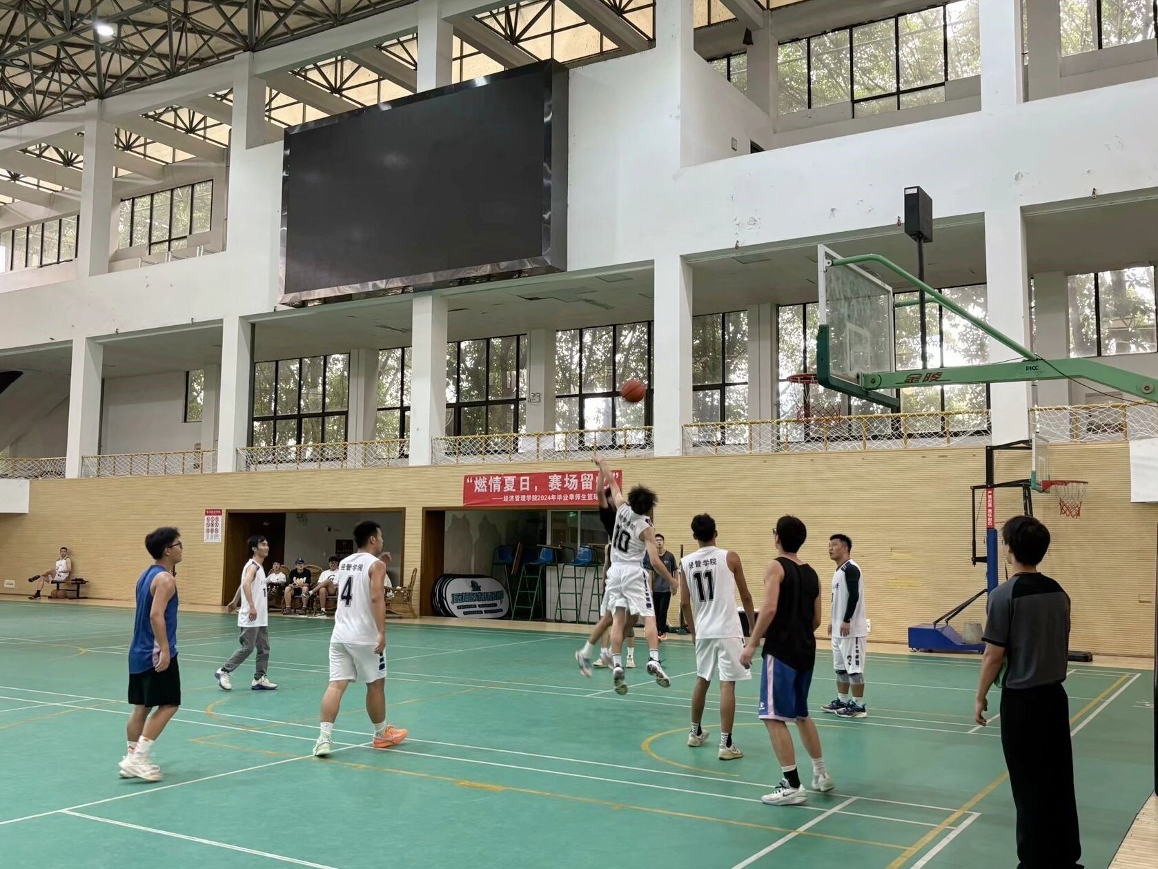 活动开始前,郭强发表了讲话,他祝愿毕业生们在今后的日子里无论是在学习、生活还是运动场上,都能够出类拔萃,并希望大家在任何方面都能成为健将,不止运动场上。紧接着韩科院长在篮球赛开始前发表了讲话,他强调友谊第一,比赛第二,并希望此次活动圆满开展。