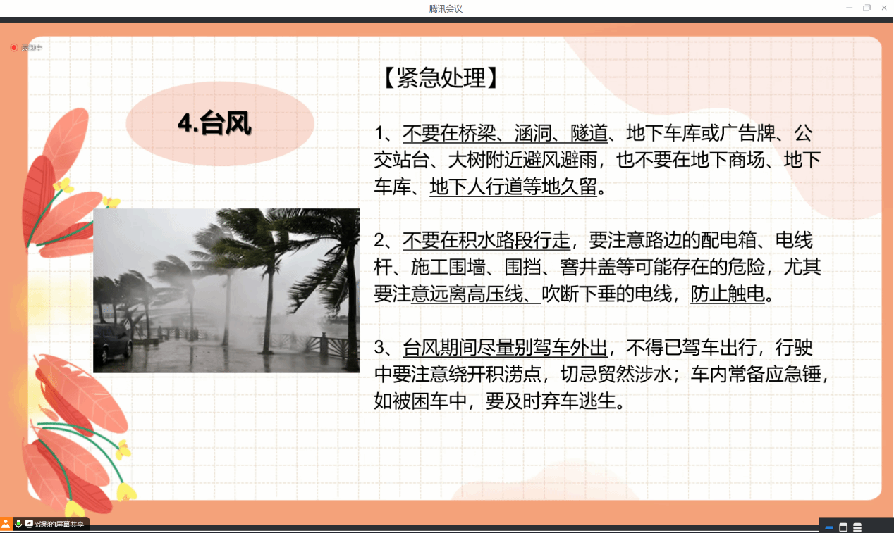 动员环节结束后,bat365官网登录入口青年志愿者协会实践考核部的干部详细地为27支队伍讲解“三下乡”实践要求,包括活动介绍、安全须知、报账流程、投稿环节、风采展示和提问环节等方面内容。其中特别强调各队伍成员要严格遵循制度纪律,随时关注气象变化,注意出行安全,远离危险区域,保持通讯畅通,增强救护能力,让大家在保障安全的前提下更好地开展各项实践活动,并为大家了列举了常见的极端天气和自然灾害的预防措施和紧急处理方式。