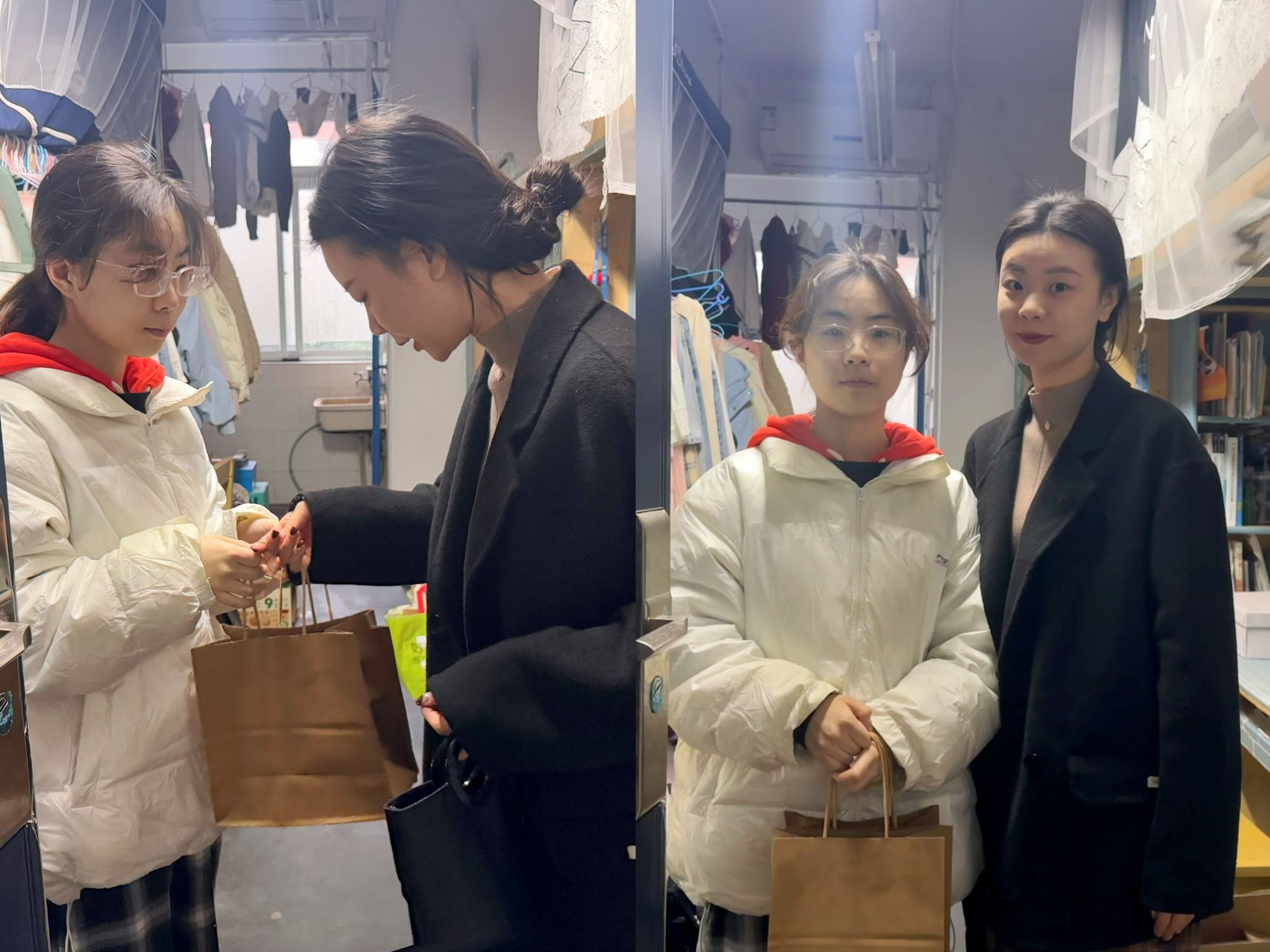 随后,学院党委书记郭强、党委副书记余小英以及2021级辅导员张先凌、钟文婷为在场的考研学子们发放了一系列寓意深刻且实用的慰问物资,包括中性笔、单词本等学习用品,以及旺仔牛奶、香橙、棒棒糖等,寓意着同学们在考试中能够笔下生花、思维敏捷,同时保持充沛的体力和愉悦的心情。此外,辅导员老师们还亲手为每位同学写下了美好的祝福明信片,字里行间流露出对同学们的深切关怀和殷切期望。