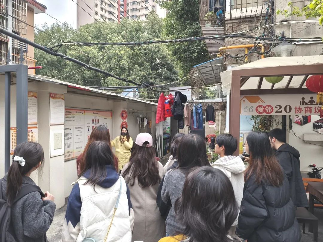 活动中,学生们实地走访了成华巷“15分钟便民生活圈”,深入了解了智慧化社区运营模式,并参观了西设家苑社区改造项目。通过亲身体验,学生们对基层治理的创新实践与温情服务有了更为深刻的认识。2022级本科生王星月表示:“以往对社区工作的认知较为局限,此次体验让我深刻体会到,基层治理不仅需要扎实的专业能力,更需要强烈的责任感与奉献精神。”