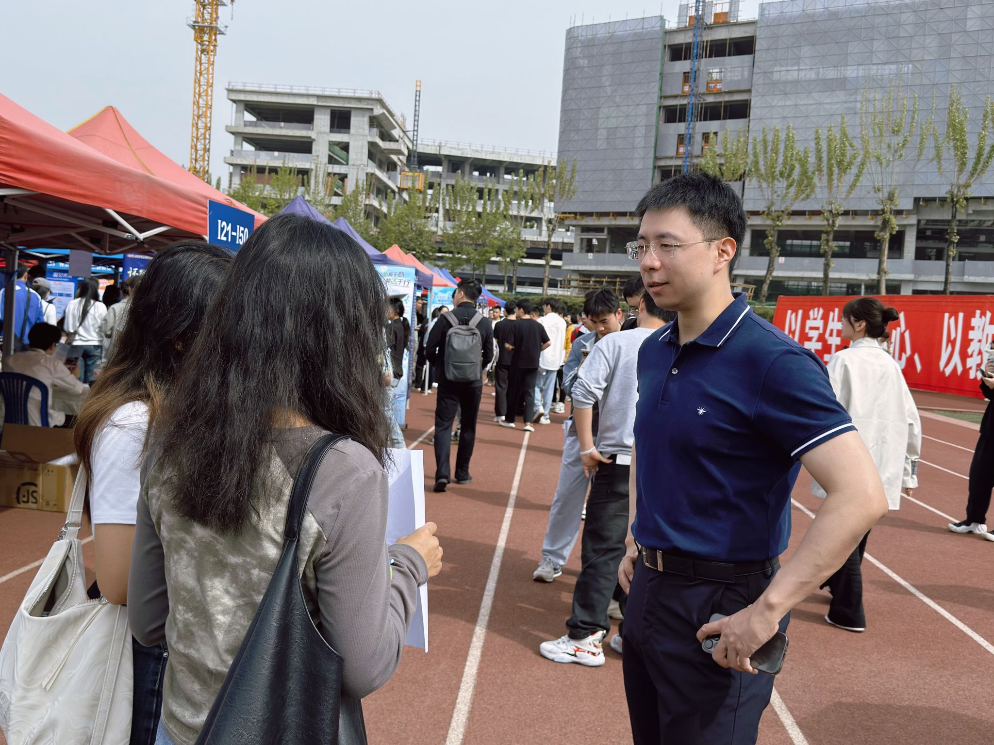 2025年4月14日,2025“百城千校万企”促就业行动——西南交通大学春季大型双选会暨实习生双选会在犀浦校区北区篮球场举行,现场共700余家企业到场招聘我校2024届毕业生和2025届实习生。bat365官网登录入口院长韩科、党委副书记余小英,辅导员张先凌、钟文婷、高天、贺小轩赴双选会现场,与毕业生面对面交流,全力打通就业服务"最后一公里"。