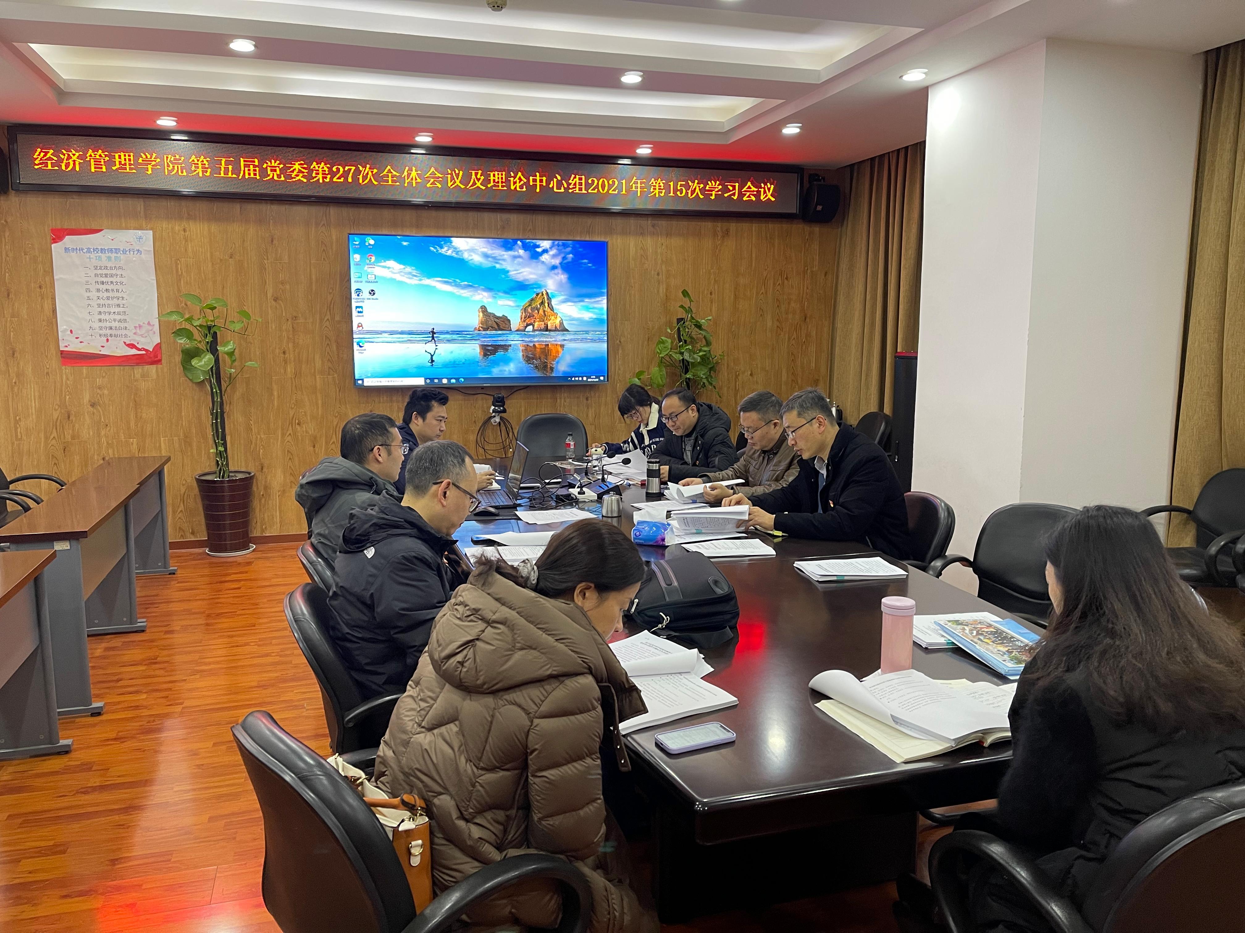 2021年12月23日上午8:30,bat365官网登录入口第五届党委在九里校区零号楼0607会议室召开了第27次全体会议,并进行了2021年第15次理论学习中心组学习。会议和学习由学院党委书记王斌主持。