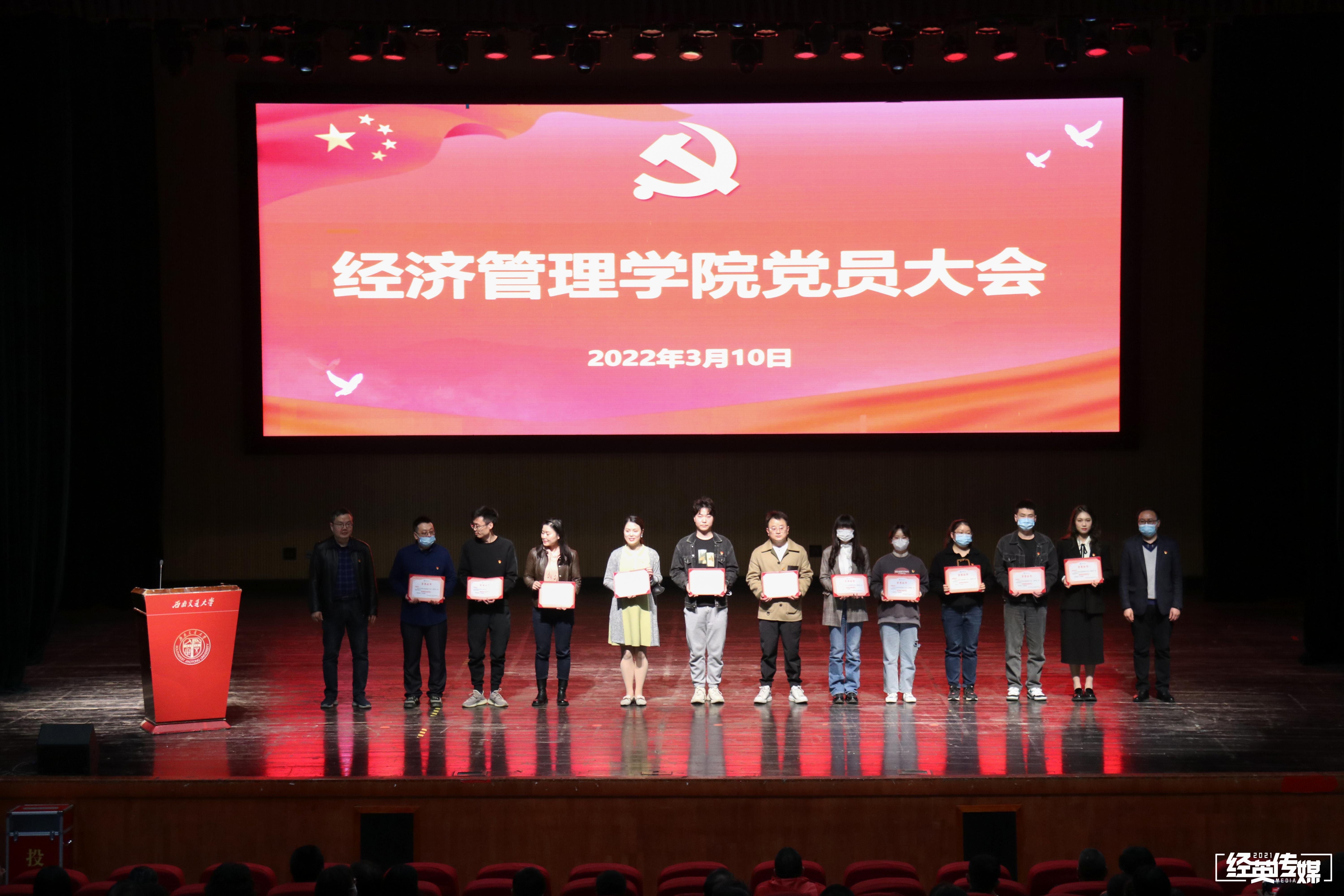 随后,大会进行了bat365官网登录入口2021年度党建工作先进集体和优秀个人的表彰。为了进一步加强学院党建工作,学院党委对各党支部2021年度党建工作进行了考核,并评选出12个先进党支部、11名优秀党支部书记和26名优秀党支部委员。学院党委书记王斌,执行院长郭强,党委副书记夏显波、杨宏毅,副院长周嘉南、李良、聂佳佳和党委委员叶勇老师分别为受到表彰的先进集体和优秀个人颁发了证书。