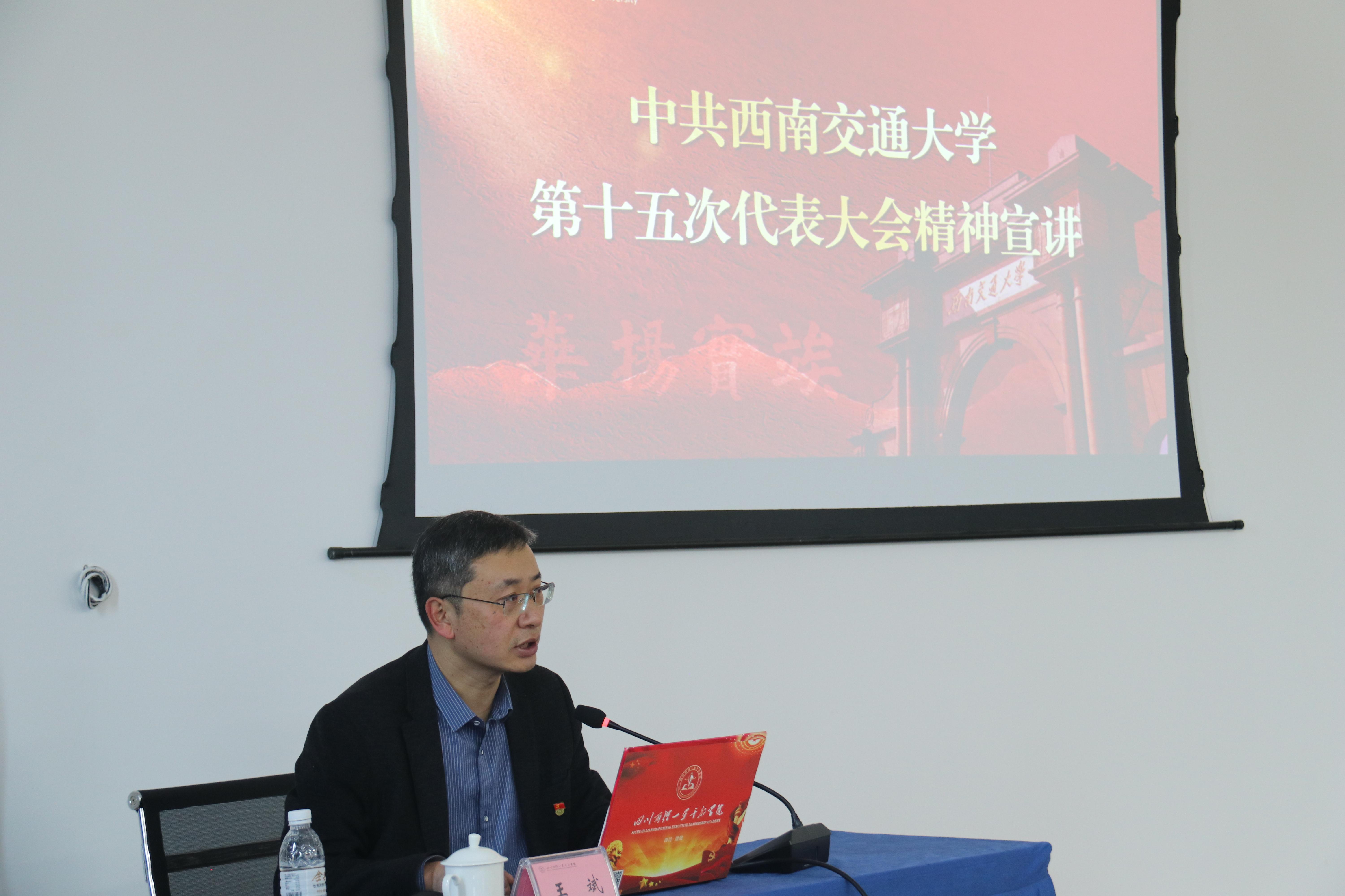 既见君子,当思奋斗。参观“两弹城”后,学院党委书记王斌于“奋斗楼”109教室领学了中共西南交通大学第十五次代表大会精神,并对教工党支部委员们进行了培训。王斌表示,党员干部们应当主动挑起建设学院的重任,紧密联系支部党员和师生,不断展现团结协作、积极向上的精气神。党支部委员会要按照要求规范做好党员的教育管理工作,严肃“三会一课”,强化理论学习,发挥好战斗堡垒作用。党员干部们要发扬和传承“两弹一星”精神,将教书育人与科研作为毕生的事业,踔厉奋进,为bat365官网登录入口的建设添砖加瓦。