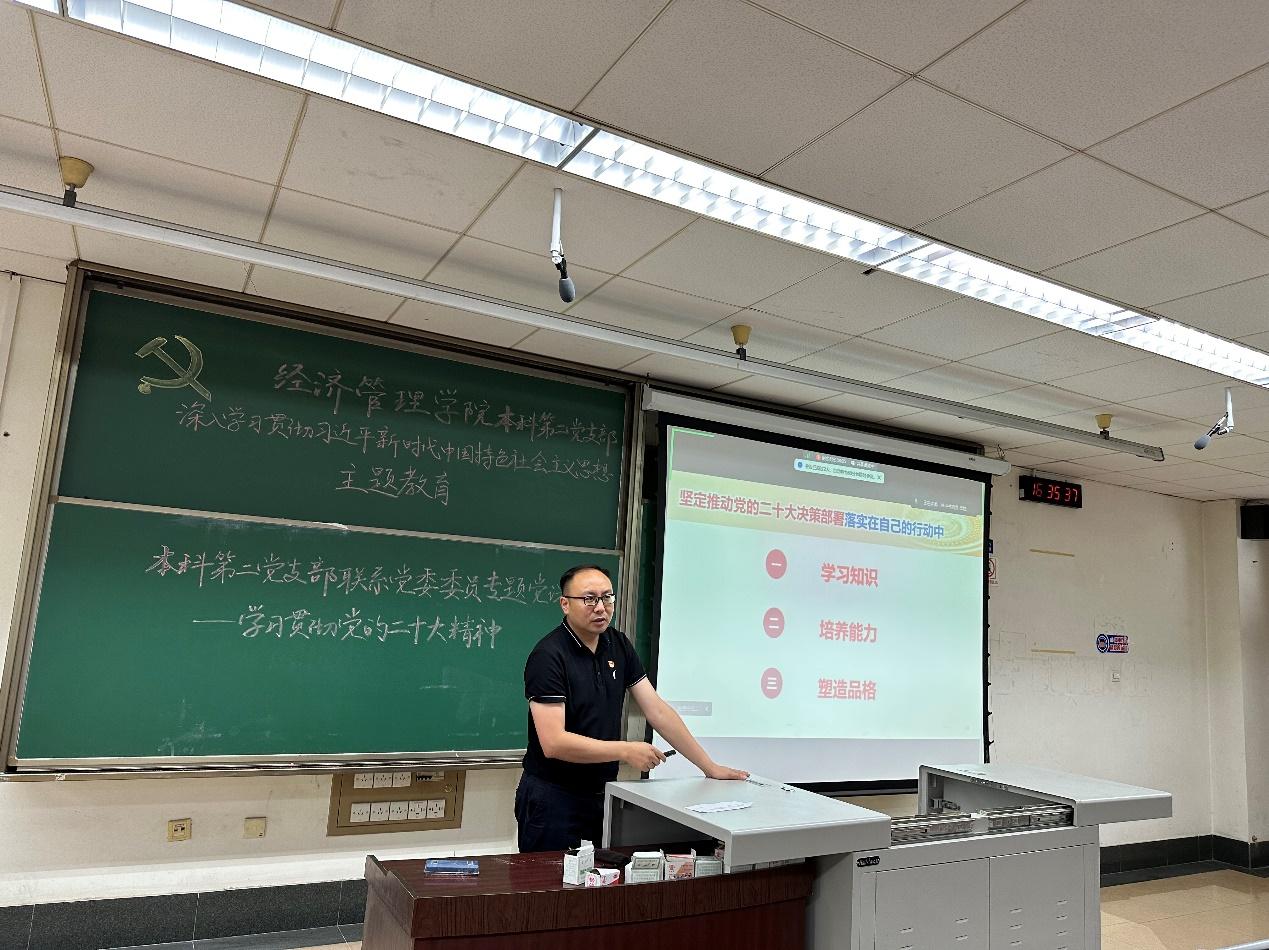 为扎实推进学习贯彻习近平新时代中国特色社会主义思想主题教育,6月8日,bat365官网登录入口本科第二党支部邀请党支部联系党委委员杨宏毅副书记为党支部成员讲授专题党课,加强理论学习,接受思想洗礼。