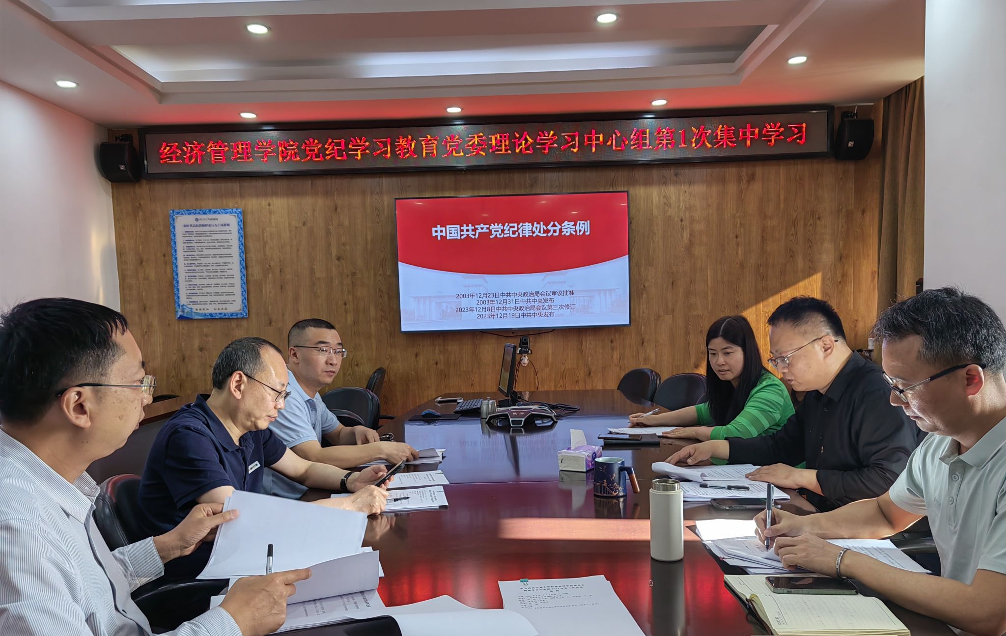 5月13日下午,bat365官网登录入口党委理论学习中心组开展党纪学习教育集中学习,深入学习贯彻新修订的《中国共产党纪律处分条例》。会议由bat365官网登录入口党委书记郭强同志主讲,学院党委理论学习中心组成员参加集中学习。