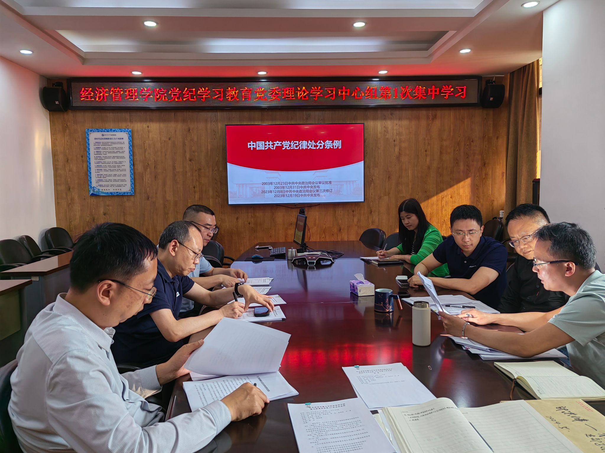 教职工党支部积极响应党纪学习教育号召,全面践行党的纪律成效显著。5月9日,机关第一、第二党支部、经济学系党支部等教工党支部围绕《中国共产党纪律处分条例》、“习近平总书记关于党的纪律建设的重要论述”等内容开展主题党日学习,进一步明确了作为人民教师和教育工作者应恪守的底线和红线;6月27日,信息系统与运营管理系党支部开展“心怀纪律‘戒尺‘ 勇担育人使命”专题党课,让党员教师深刻体会到作为教育工作者,必须时刻保持清醒头脑,将纪律内化于心、外化于行,勇于担当起培养社会主义建设者和接班人的历史使命;4月至6月,会计学系等党支部多次举办党纪学习教育,结合自身教学科研实际,深入探讨了如何在日常工作中践行党的纪律要求,如何确保教学质量,维护学术诚信,针对当前教育领域存在的热点问题和潜在风险点,提出了切实可行的防范措施和建议,为构建健康、和谐的教育生态贡献了智慧与力量。