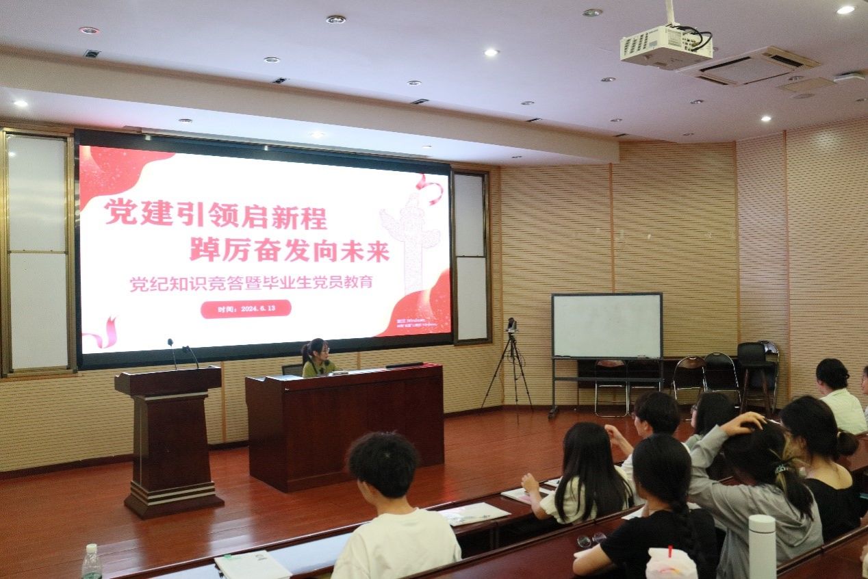 学生党支部开展党纪学习教育,提高党员纪律意识和党性修养。学院党委书记郭强于5月9日为学生党员讲授《中国共产党纪律处分条例》专题党课,通过深入解析和案例教学,引导党员准确理解和掌握党规党纪。4月至6月期间,各学生党支部围绕“学条例,守党纪,强党性”党纪学习教育主题,组织了多样化的学习活动,如主题党日、专题教育读书会、知识竞答、警示教育案例学习、毕业生党员教育等,促进广大党员深刻学习领悟《中国共产党纪律处分条例》,切实做到知纪于心、立纪于身、化纪于行,推动党纪学习教育入脑入心、走深走实。党支部之间积极开展联学共建活动,5月22日,本科第一、第三党支部与北京大学深圳研究生院研究生宣讲团联合开展“智起未来,联学共筑青年发展新篇章”主题党日活动,增强对党的纪律的理解,并要求支部党员在日常生活中以更高的道德标准约束自己,时刻牢记“红线”的存在;6月4日,硕士2023级第二党支部与华北电力大学经济管理系研究生第四党支部开展以“初心如磬担使命,奋楫笃行谱新章”为主题的党纪学习教育联学活动,在交流互鉴的过程中探讨如何将党规党纪应用于日常工作和生活中,进一步提升党员的教育效果。