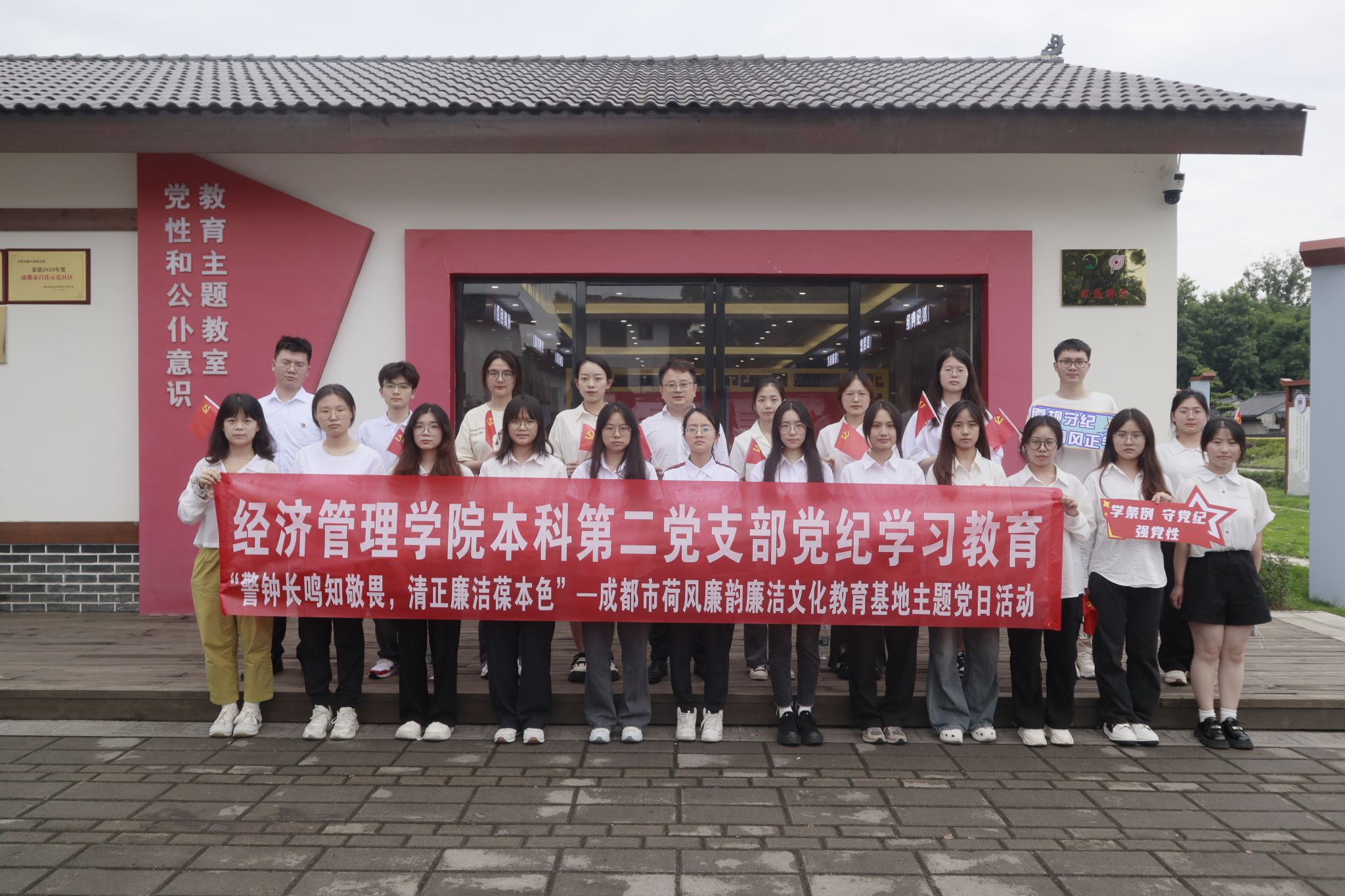 各党支部创新开展党纪学习教育实践活动,探寻廉洁文化与汲取革命传承。6月7日,本科第二党支部深入“荷风廉韵”廉洁文化教育基地,以“警钟长鸣知敬畏,清正廉洁葆本色”为主题,通过实地学习筑牢拒腐防变的思想道德防线。6月6日,本科第四党支部创新形式举办支部书记讲党课活动,从党史视角深刻阐述了党的纪律建设的重要性,结合端午佳节组织党员参与香囊手工制作、带领新预备党员前往四川省革命伤残军人休养院,通过聆听革命故事、赠送端午香囊与艾草锤,在革命前辈的指引下深化党纪学习教育的心得体会,实现学思践悟的有机结合。