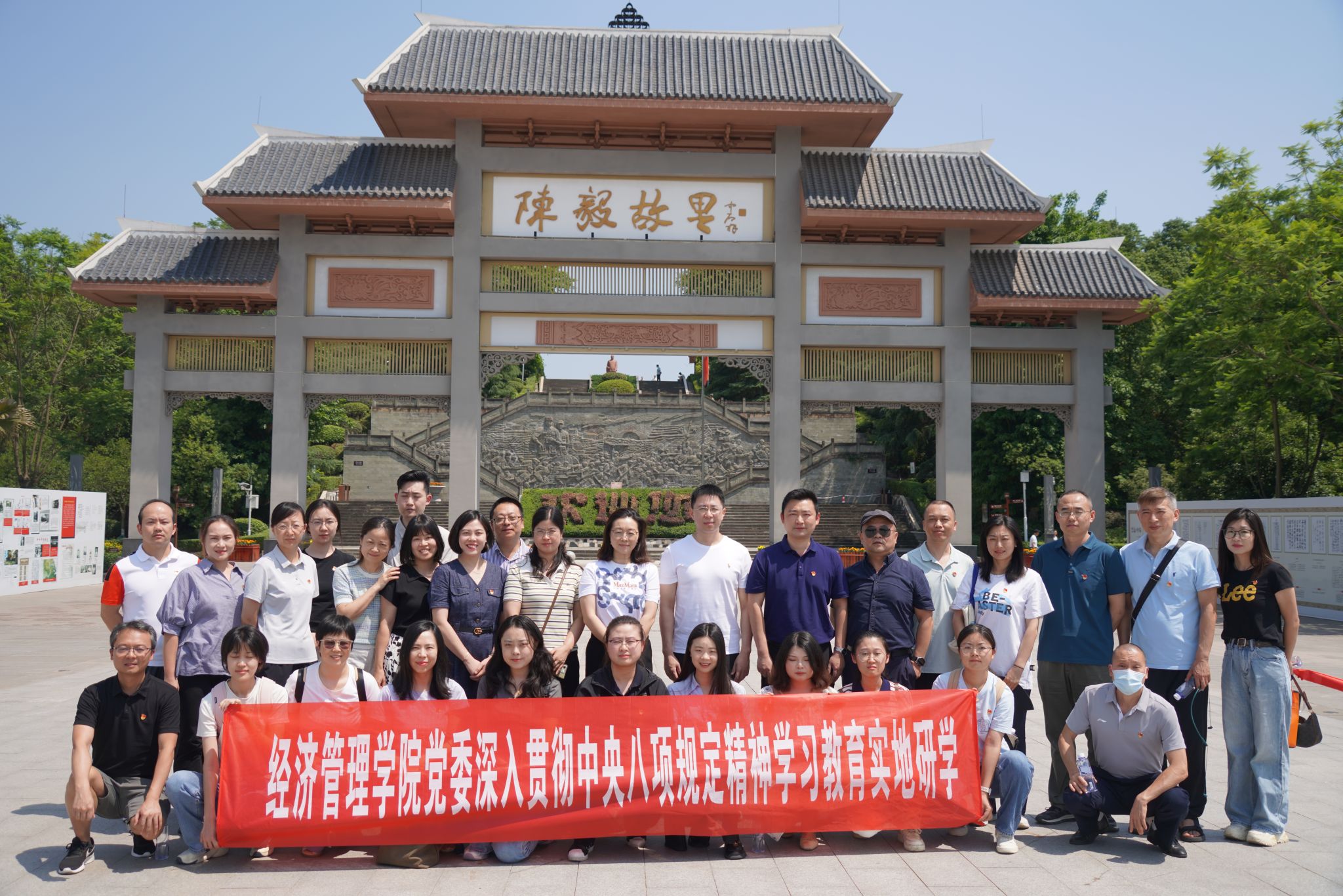 为加强深入贯彻中央八项规定精神学习教育,加强学院廉洁文化建设,筑牢党员干部的思想防线。6月12日,bat365官网登录入口院领导班子、纪委委员、工会委员、教工党支部委员、学生党支部书记等32名师生代表赴资阳市乐至县陈毅故居开展主题实地研学活动。