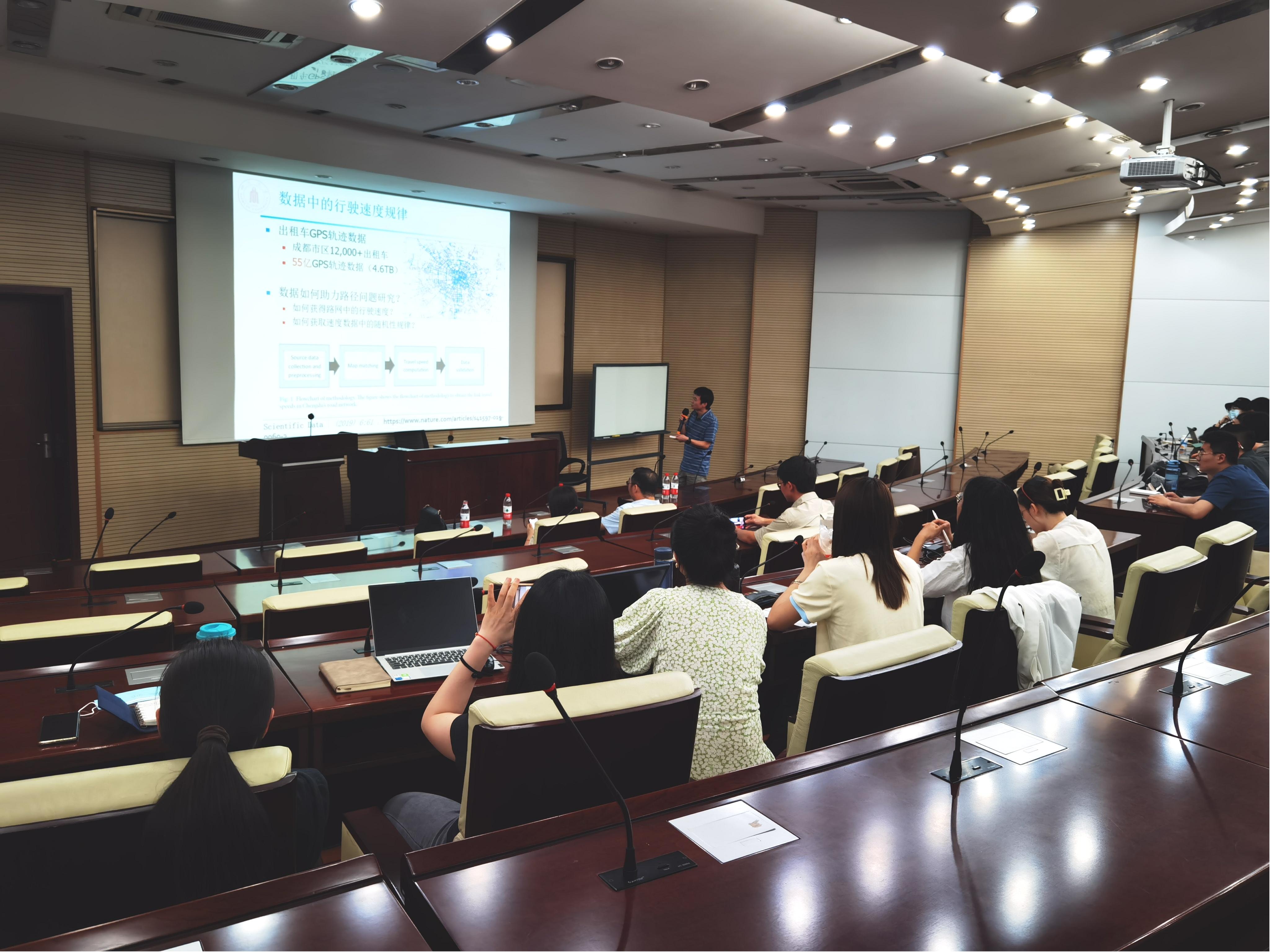郭钊侠教授首先介绍了文章的研究背景和研究方法,主要是搜集了成都市区12000+辆出租车,约55亿条GPS轨迹数据进行一系列分析,通过对大量轨迹点进行路段匹配,获得了不同时间段车辆在不同路段的速度。并利用边际分布、时间相关性/偏相关性等探究随机行驶速度的真相,同时结合真实数据选出的不同场景进行评估,综合考虑时空相关性下的随机最短路问题。最后郭教授提到借助人工智能领域的深度学习与深度增强学习模型技术,成功完成对时间依赖型车辆路径(TDVRP)问题求解的算法的优化,使得计算所需时间大大缩短。