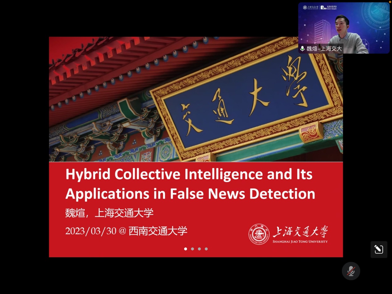 3月30日下午14点30分,上海交通大学安泰经济与管理学院魏煊助理教授应邀为我院师生带来了题为“Hybrid Collective Intelligence and its Applications in False News Detection”的学术讲座。讲座由我院信息系统与运营管理系刘盾教授刘盾教授主持,学院部分教师及研究生参与了此次学术活动。