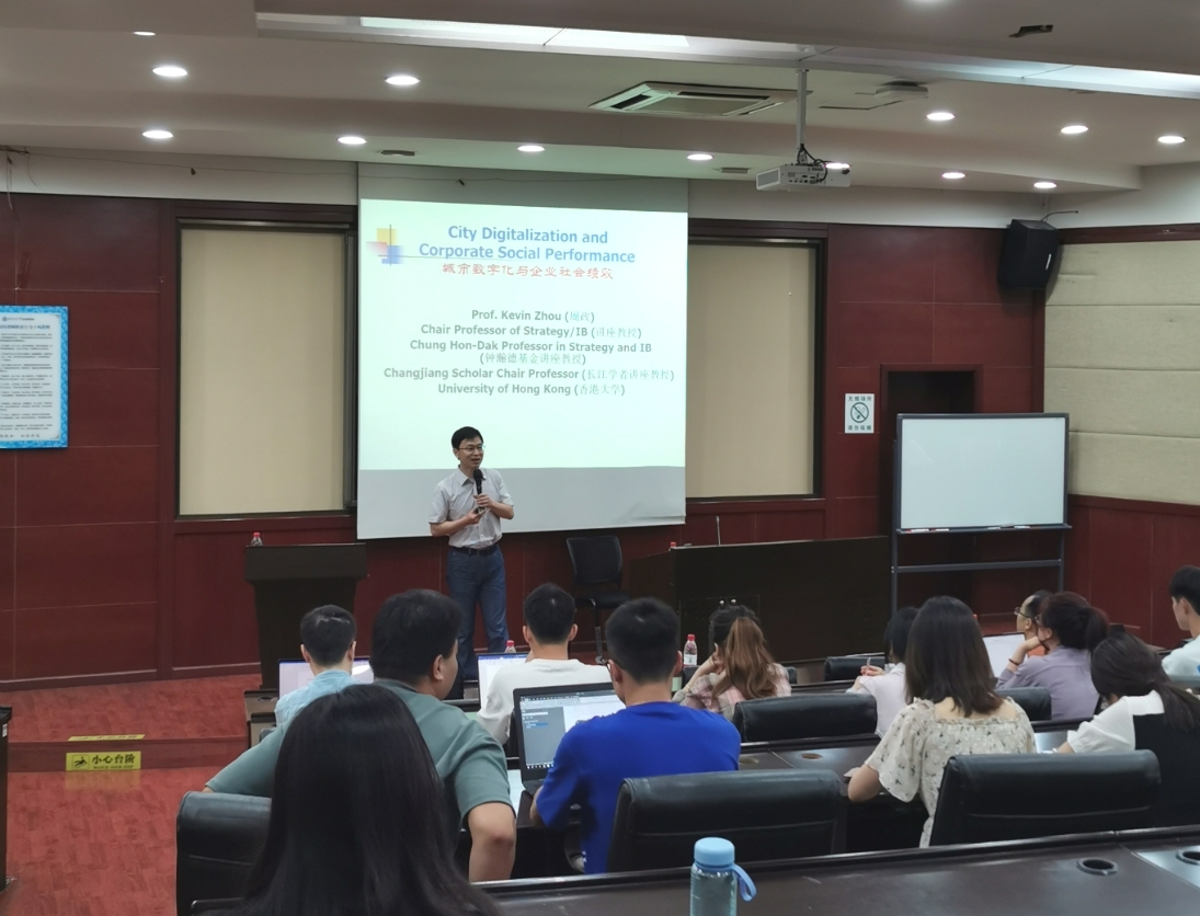 2023年6月25日上午,我院邀请香港大学bat365学院战略及国际商务讲座教授、钟瀚德基金讲座教授周政(Kevin Zheng Zhou)教授在学院0224室为我院师生分享题为“City Digitalization and Corporate Social Performance (城市数字化与企业社会绩效)”的学术讲座。bat365官网登录入口执行院长郭强在讲座开始前致欢迎词并对周政教授进行隆重介绍,随后对周政教授的到来表示衷心感谢。讲座由学院市场学系黄缘缘副教授主持,学院部分老师和同学参加了此次讲座。
