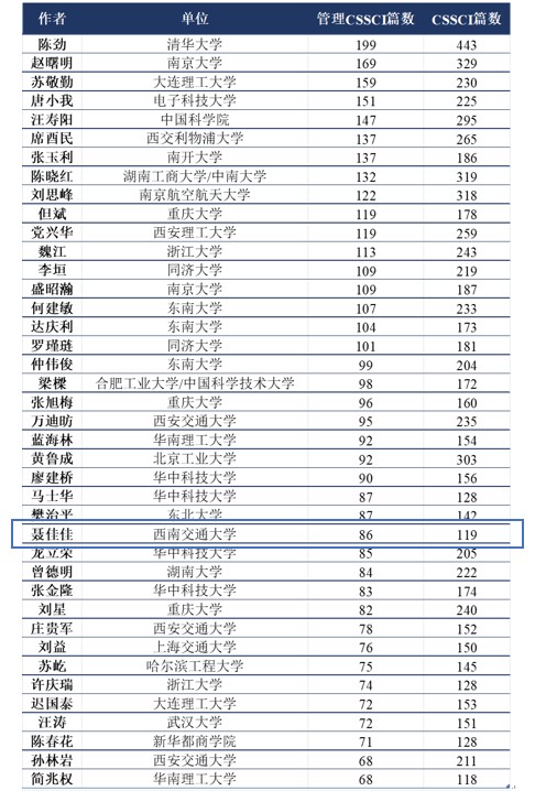从学科专业来看,这些学者都是管理学科的著名学者,来自工商管理领域、管理科学与工程等领域。我院聂佳佳教授荣登该榜,排名第27位,发表CSSCI期刊篇数119篇,其中管理类CSSCI期刊86篇。