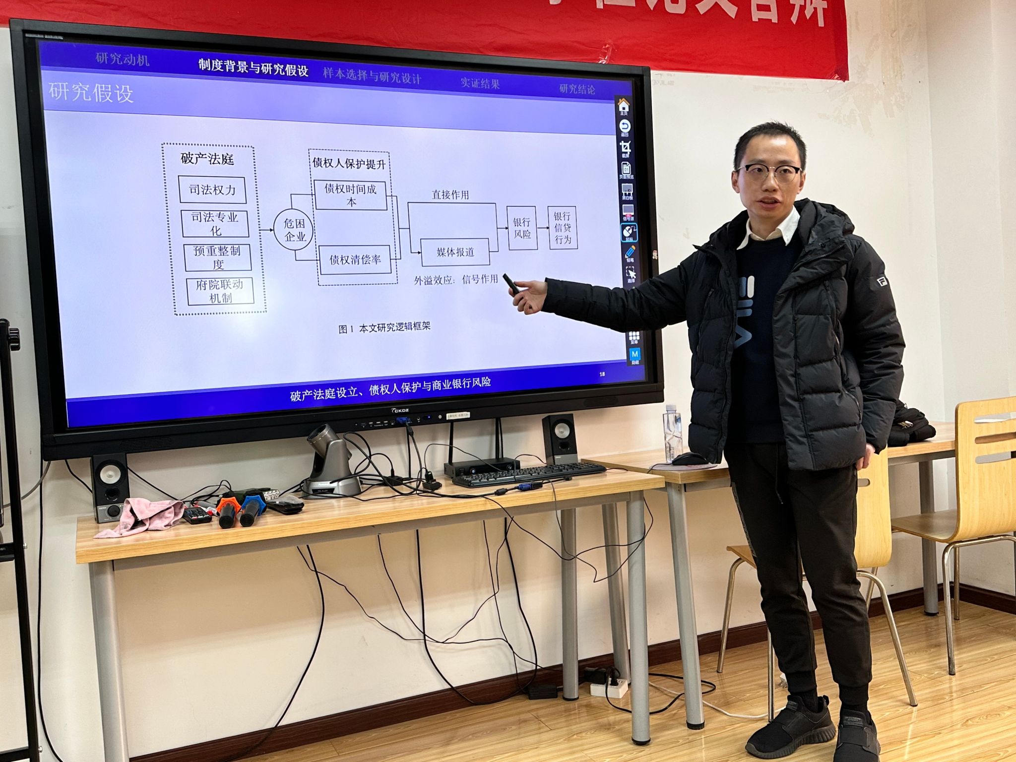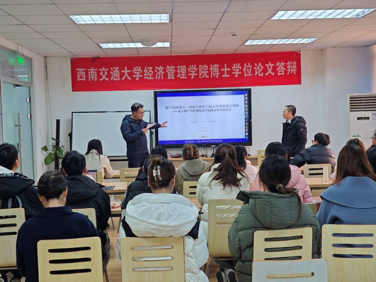 12月27日下午,重庆大学经济与工商管理学院胡诗阳副教授应邀在bat365官网登录入口为我院师生分享题为“破产法庭设立、债权人保护与商业银行风险——基于破产司法制度改革的准自然实验研究”的学术讲座。本次学术活动由bat365官网登录入口会计学系诸波老师主持,学院部分教师及研究生参加此次学术活动。
